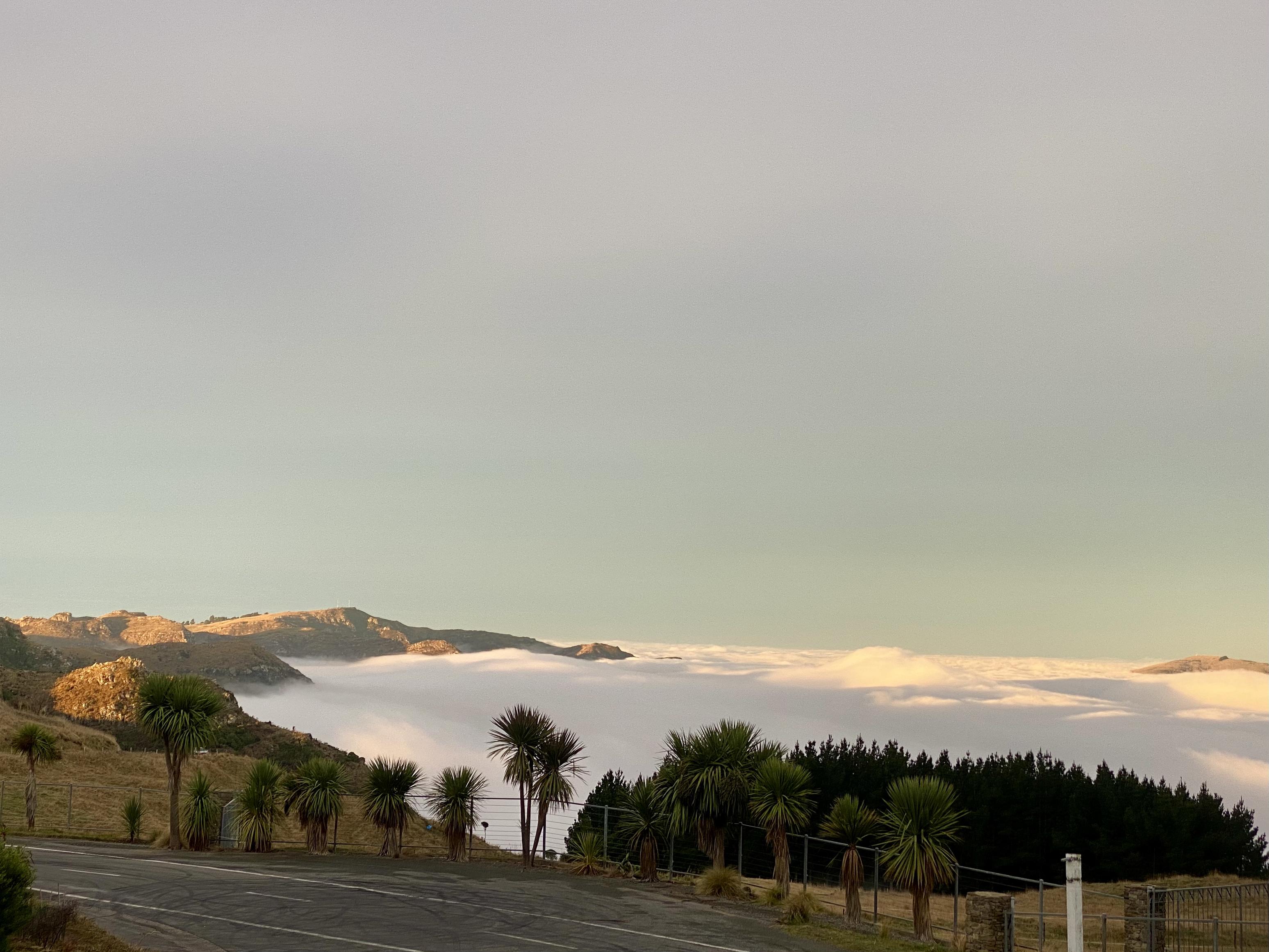 Monday was an abysmally gloomy day, hidden forever beneath the clouds. I wasn’t sure if I’d see the sky on my run, but after a hard climb to Worsley’s Spur I was greeted with this view of Lyttelton Harbour.