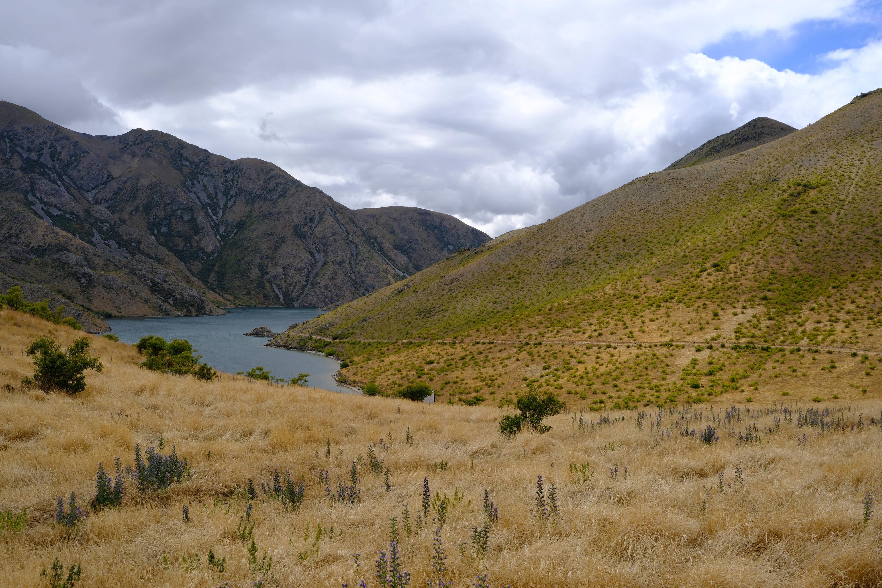 In the morning we trundled into Ōmarama to pick up some cheese and salami for our next few lunches; topped up our water bottles at a tap we found and headed off toward Lake Benmore. The track is very nice for the entirety of this day and it was all very straightforward. The only climbing of significance is a few short sections around the lake after Sailor’s Cutting. From there is a fun descent down to Benmore Dam which is all very impressive. Em was particularly stoked to see it and we spent a good amount of time looking around before heading down the north side of Lake Aviemore to Te Akatarawa Campsite.