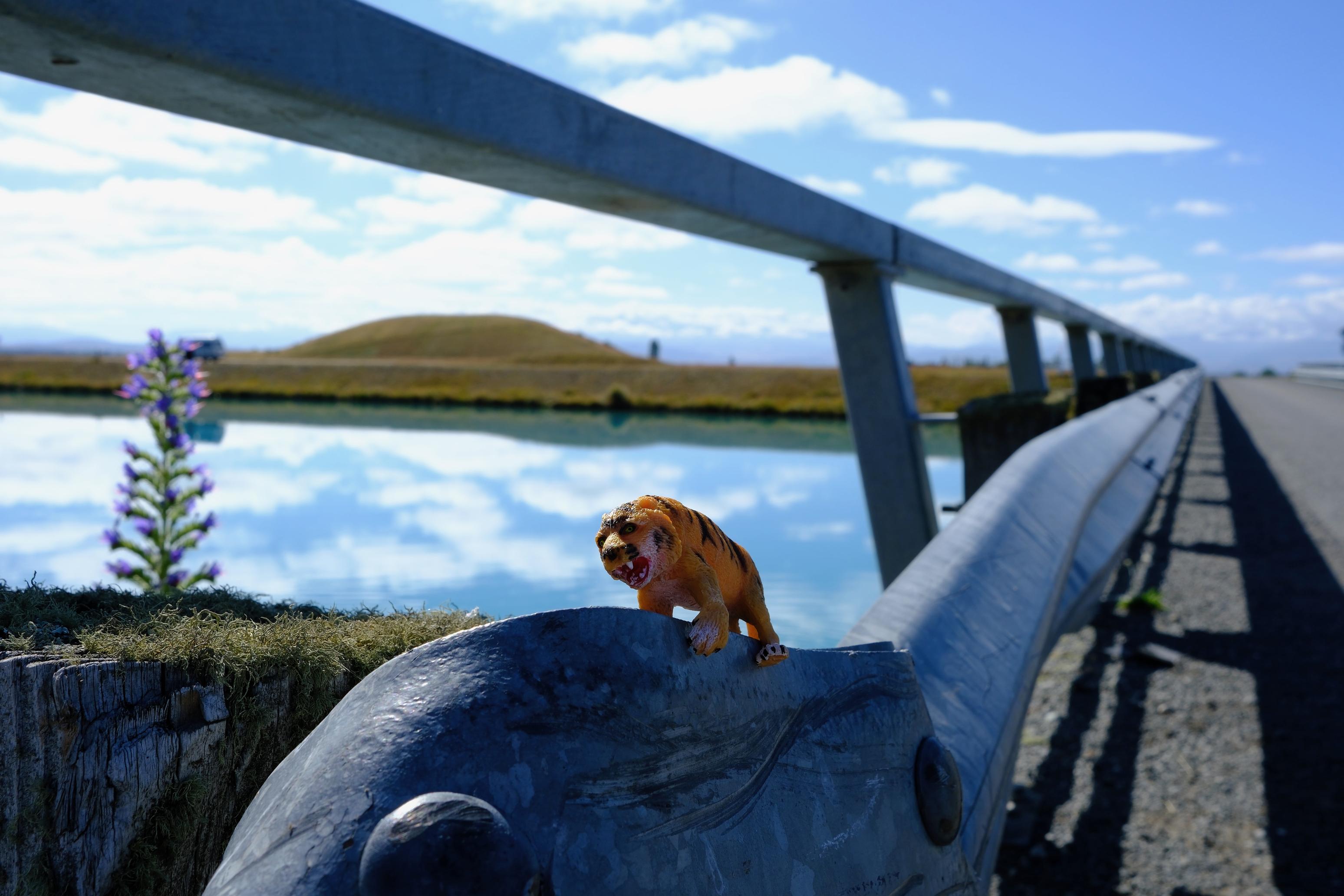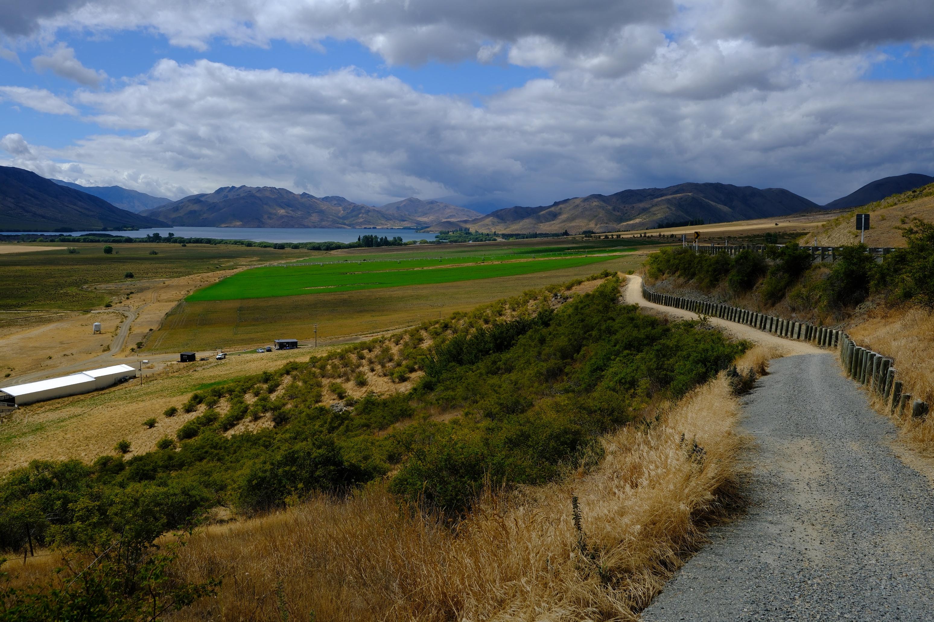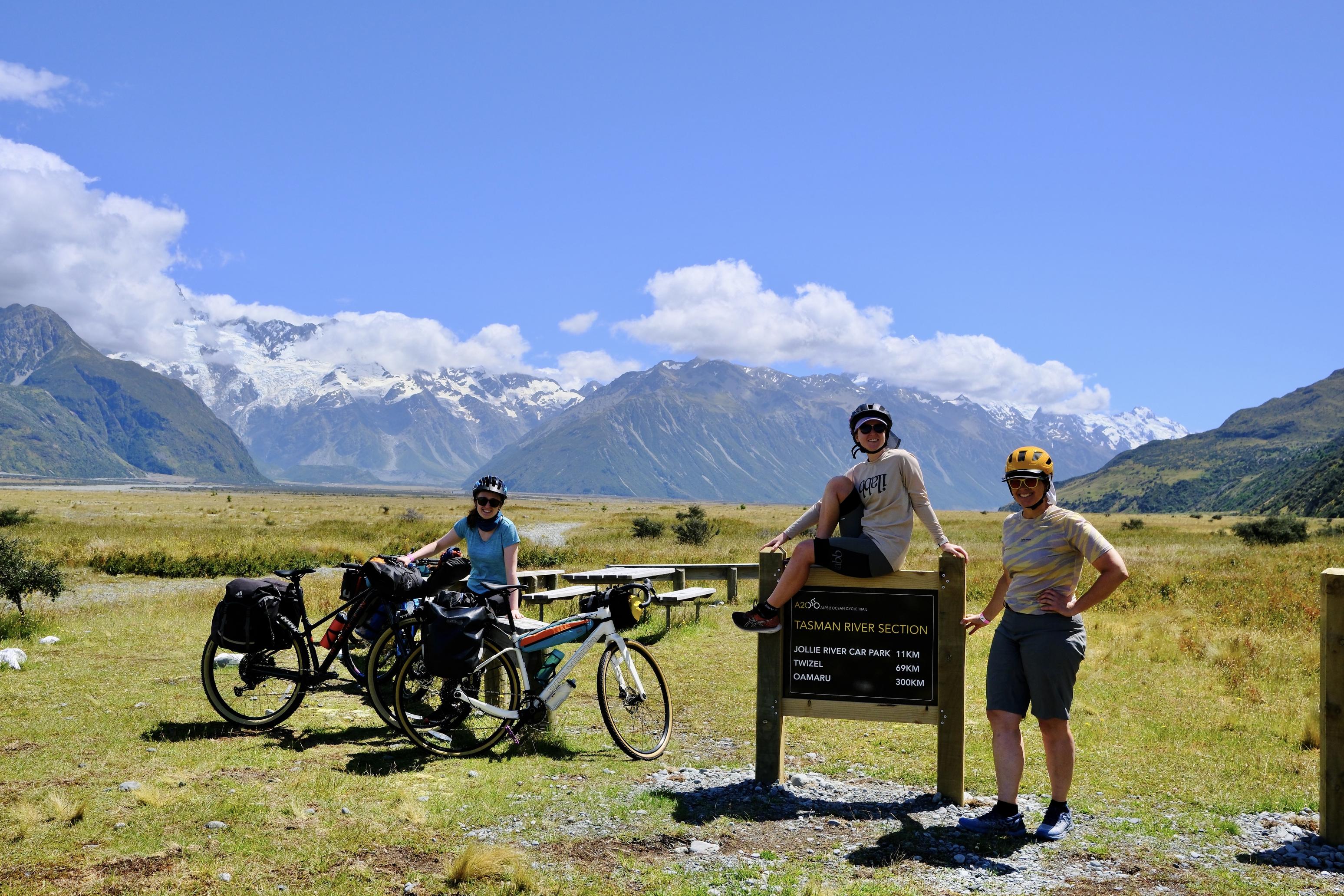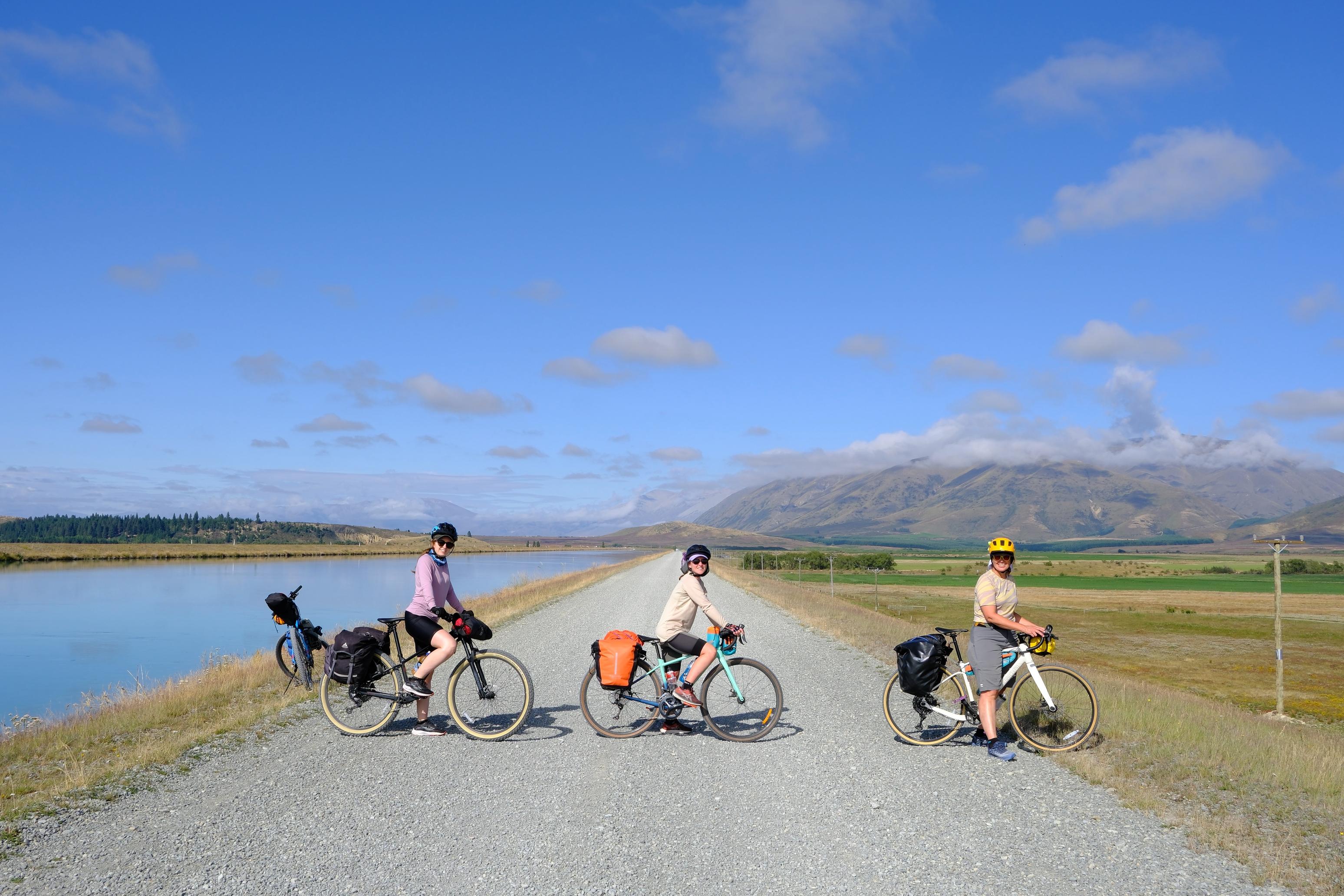 The first part of the trail is easily the slowest-going and roughest section, probably because it is the least cycled (helicopters are expensive). Still, it is plenty beautiful and we had a nice time cycling in the sun. Our first mechanicals of the trip were my fork bags coming loose, and then Jen’s crank falling off (twice)! With both of those fixed, we trundled on. The track becomes better and better as you go along, coming onto the road for a while before re-joining a dirt track along the bottom of Lake Pukaki and the Pukaki Flats Track. Super beautiful.