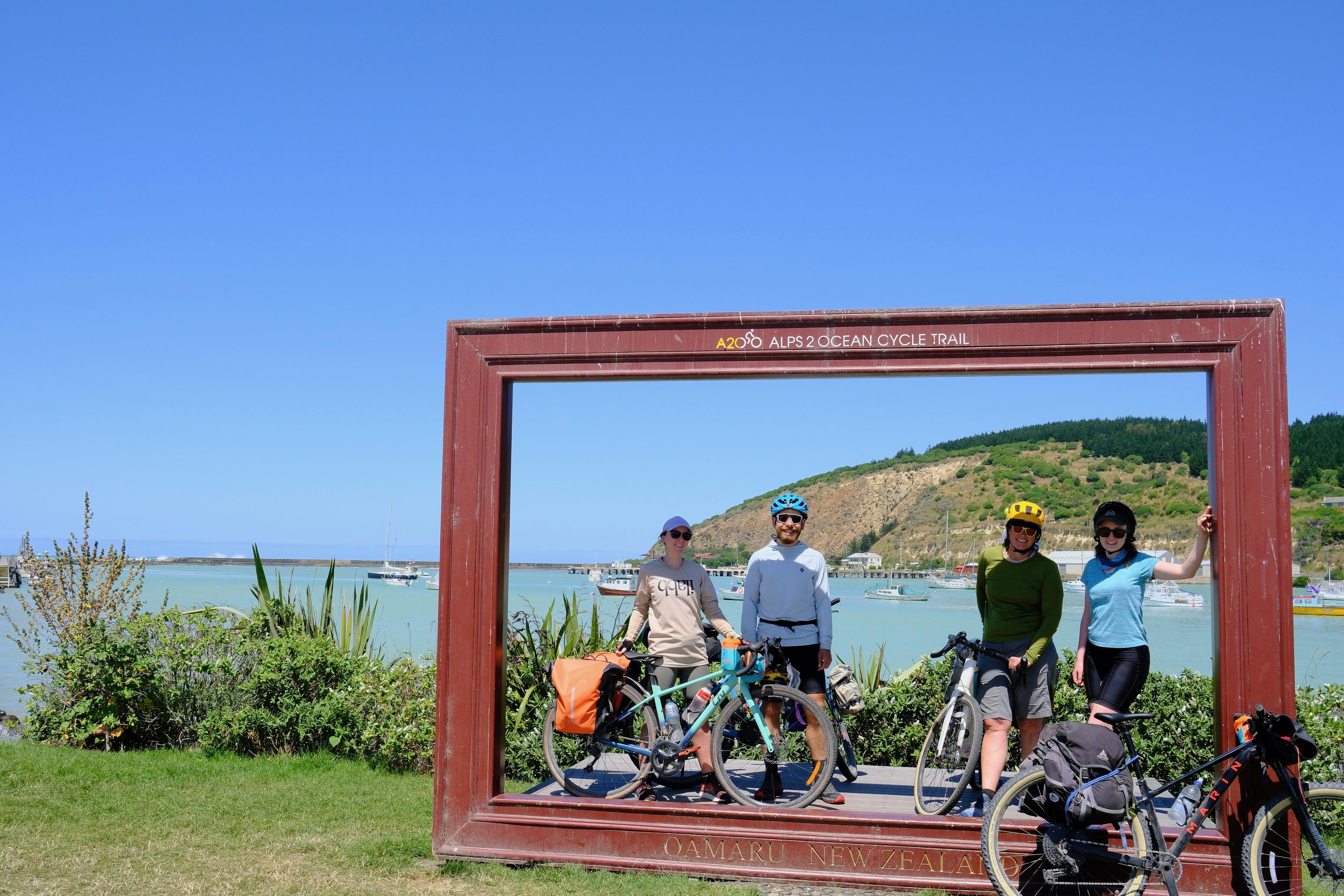 We lunched at Windsor, sitting on the grass outside their Public Hall (very much closed), enjoying the midday sun which had come out after a cloudy start. The last part of this day had a lot of downhill, which made for easy riding on well-formed trails. In the afternoon, we had coffee at the Fort Enfield Tavern and enjoyed a break from the sun. From there, it was one last climb up to Weston and then a slow descent into Ōamaru and out to the wharf! We got a little turned around as we avoided the Hollywood filming that was going on in town, but eventually made it to the ocean and later our car.