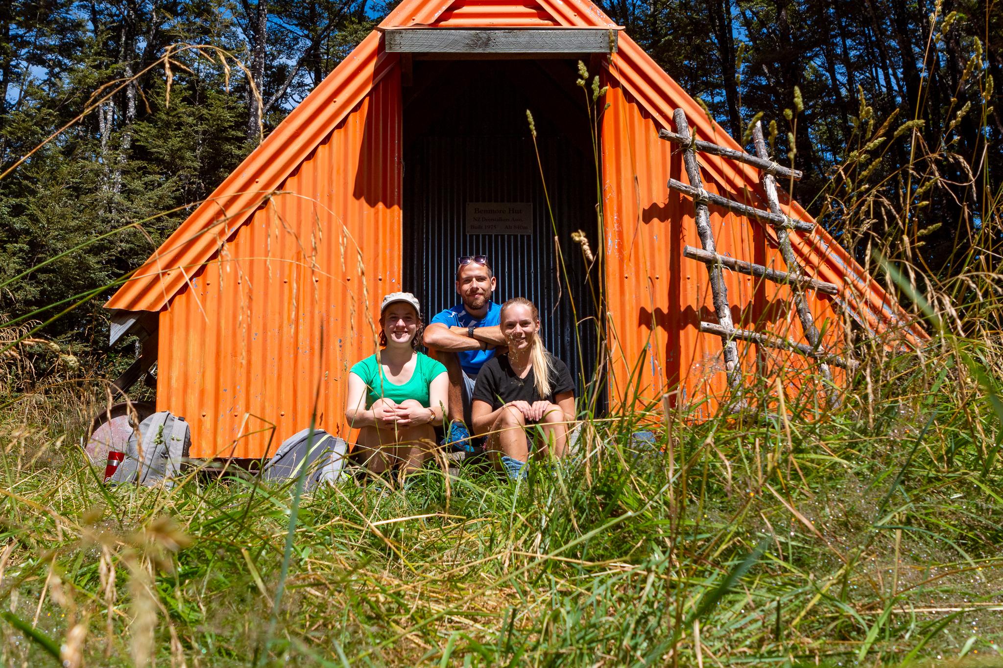 You will continue to climb for the remainder of the 6km until you reach Benmore Hut, a cute four person basic hut (although there were only three mattresses when we were there). It is bright orange so you may spot it through the trees as you approach the small saddle that it sits on!