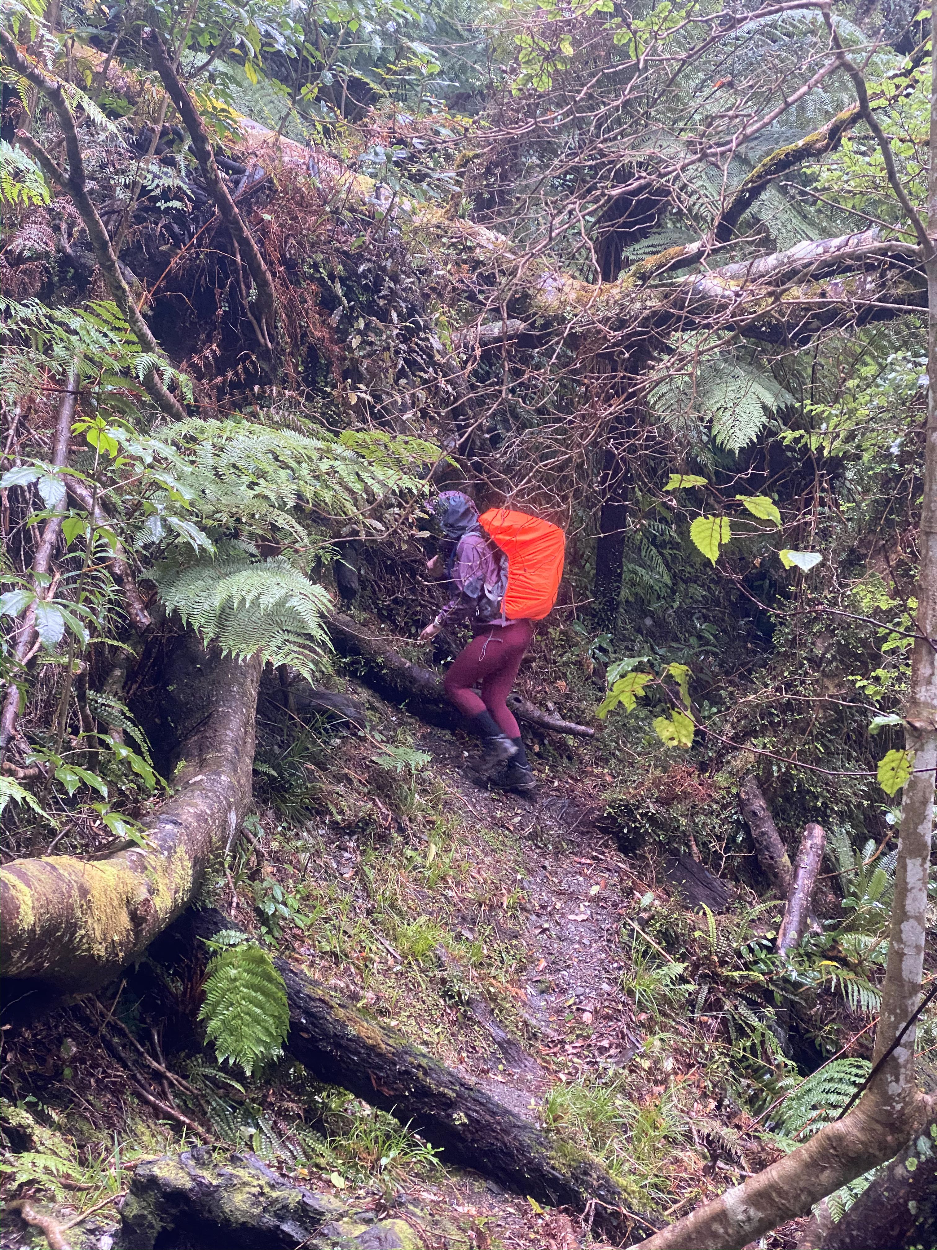 It’s winter, it’s the West Coast, it’s raining. No problem, the track isn’t very long - although it is steep! Crack out the rain jacket, the pack cover and brave the river crossings. Nothing dangerous, just a bit wet. We took our time but arrived at the hut after walking in the rain most of the way. The track climbs quite steeply at times but is all very manageable in the end.