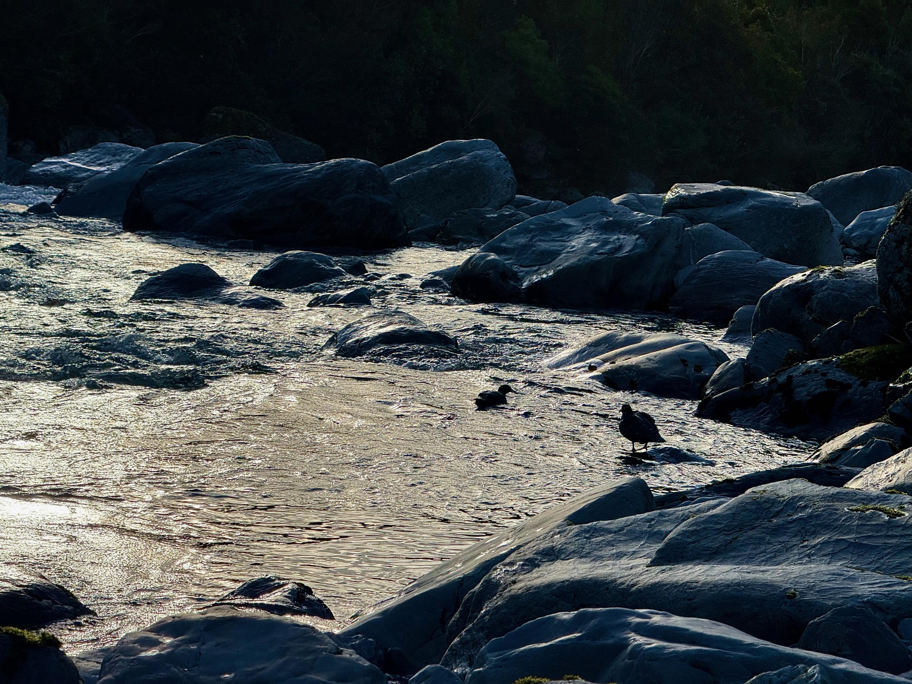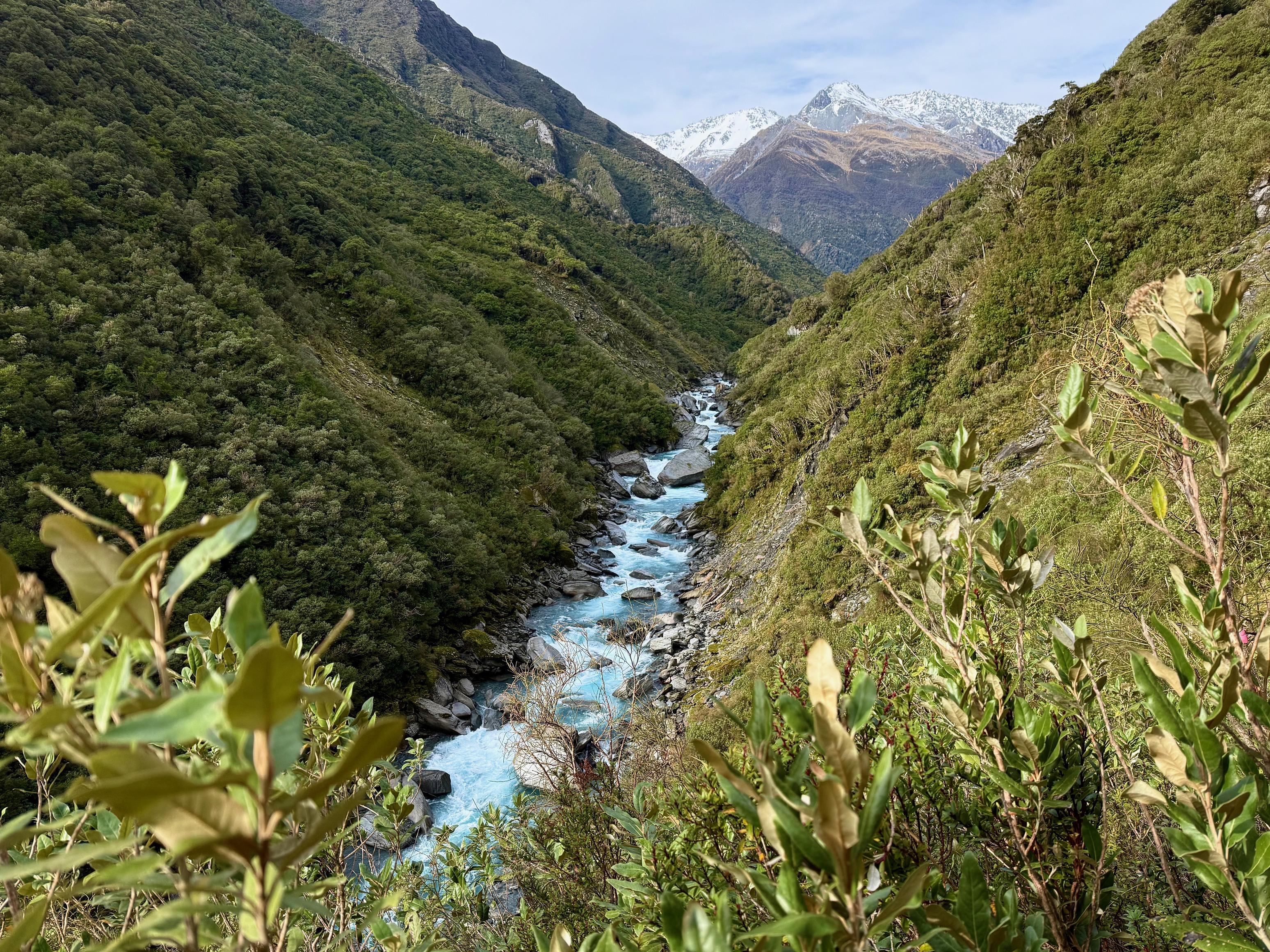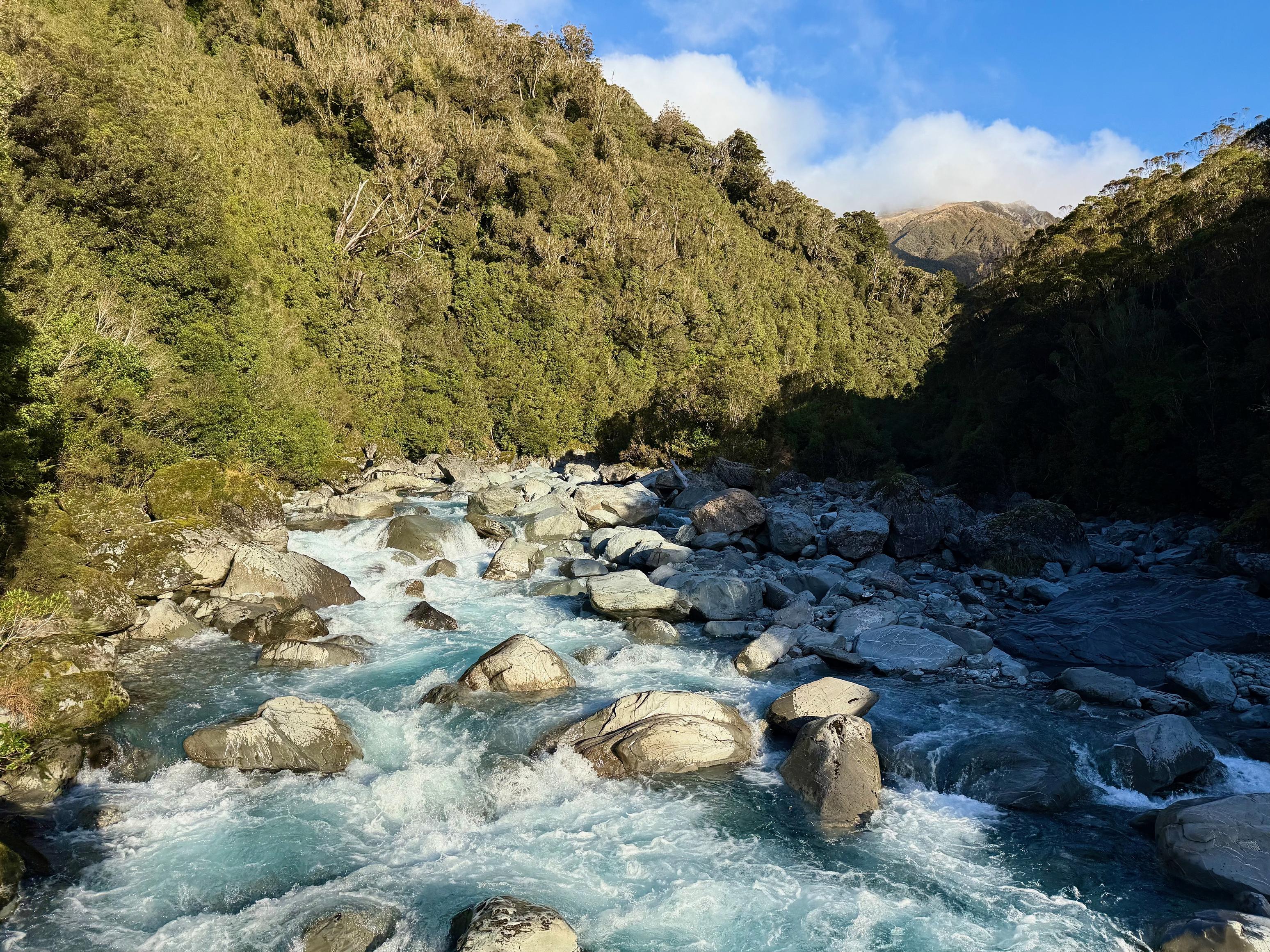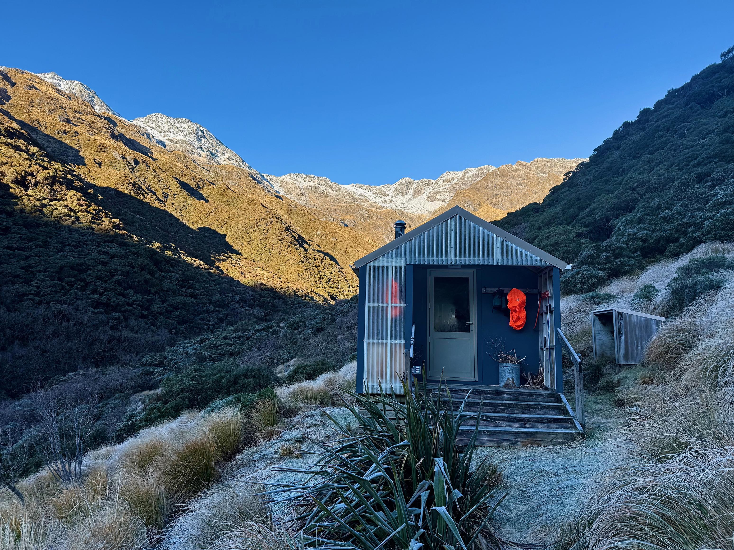 The cableway was fun and a much smoother experience than the one I tried down at Olivine Hut! The crossing was quick and easy, but I think doing it solo with the odd lever thing would have been hard work! From the cableway, the โtrackโ continues down the true right riverbed for a couple hundred meters before entering the bush and arriving at the hut. We saw two whio just before we left the river! Stoked.