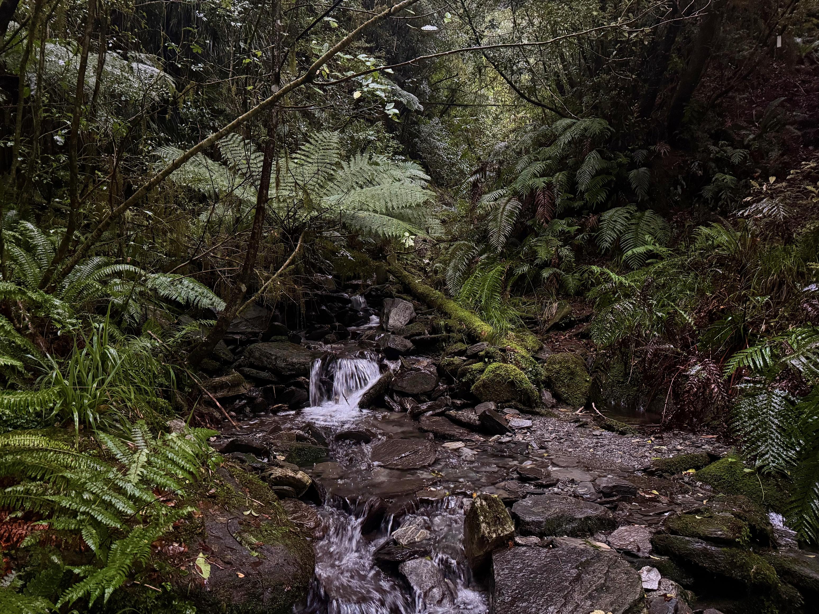 After getting into the creek, we picked our way down to the hut. Most of the time we preferred to be in or next to the creek, only going high on the bank when a waterfall presented itself.