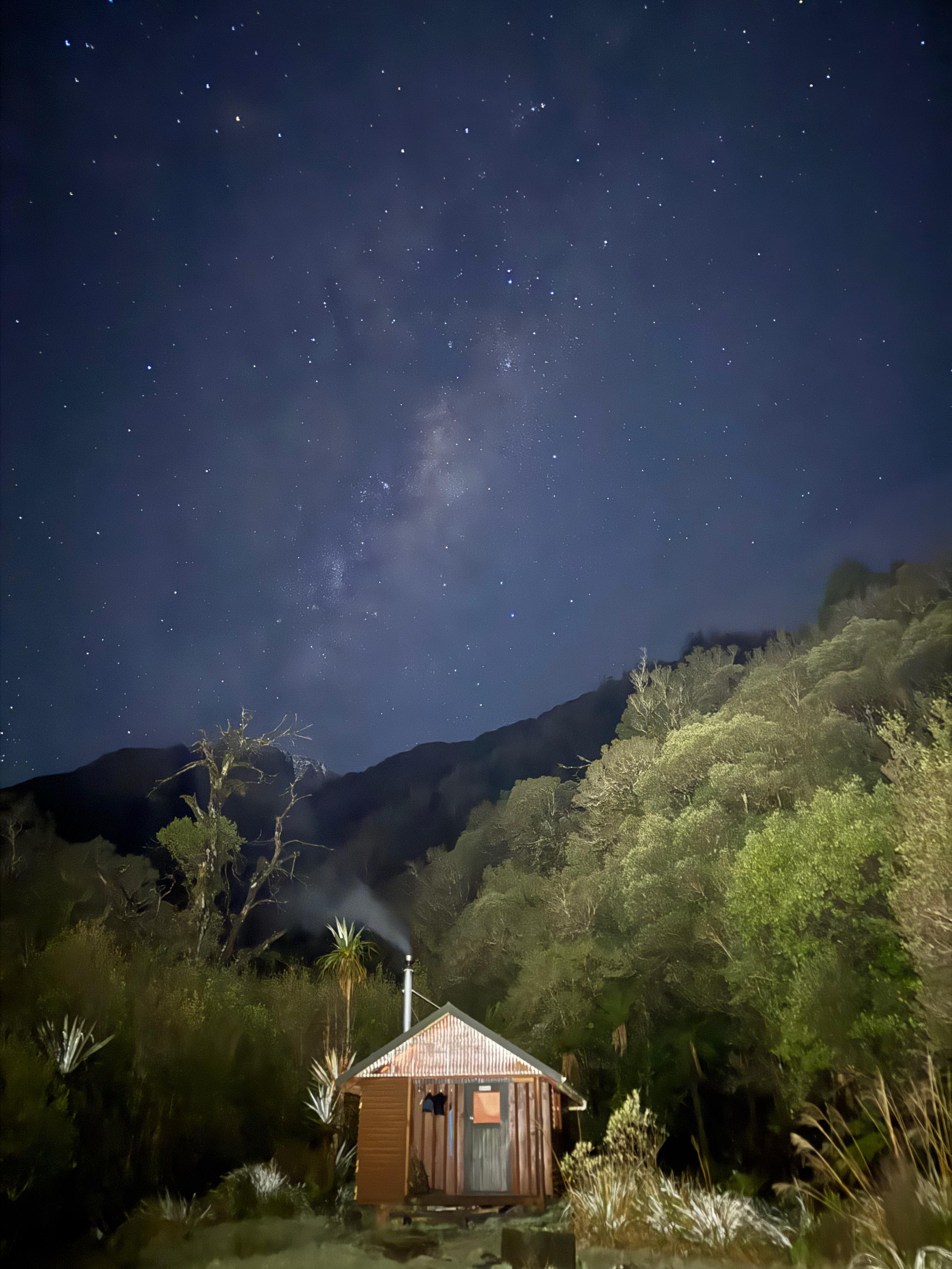 After dinner, we headed out to the hot pools and found them completely lovely. 10/10. They are situated on the far bank of Wren Creek - not the near side as marked on the Topo50 tiles. We soaked for some time in the sandfly-less dark before trodding back to the hut. We made the trek in under 15min in the dark while wearing crocs!