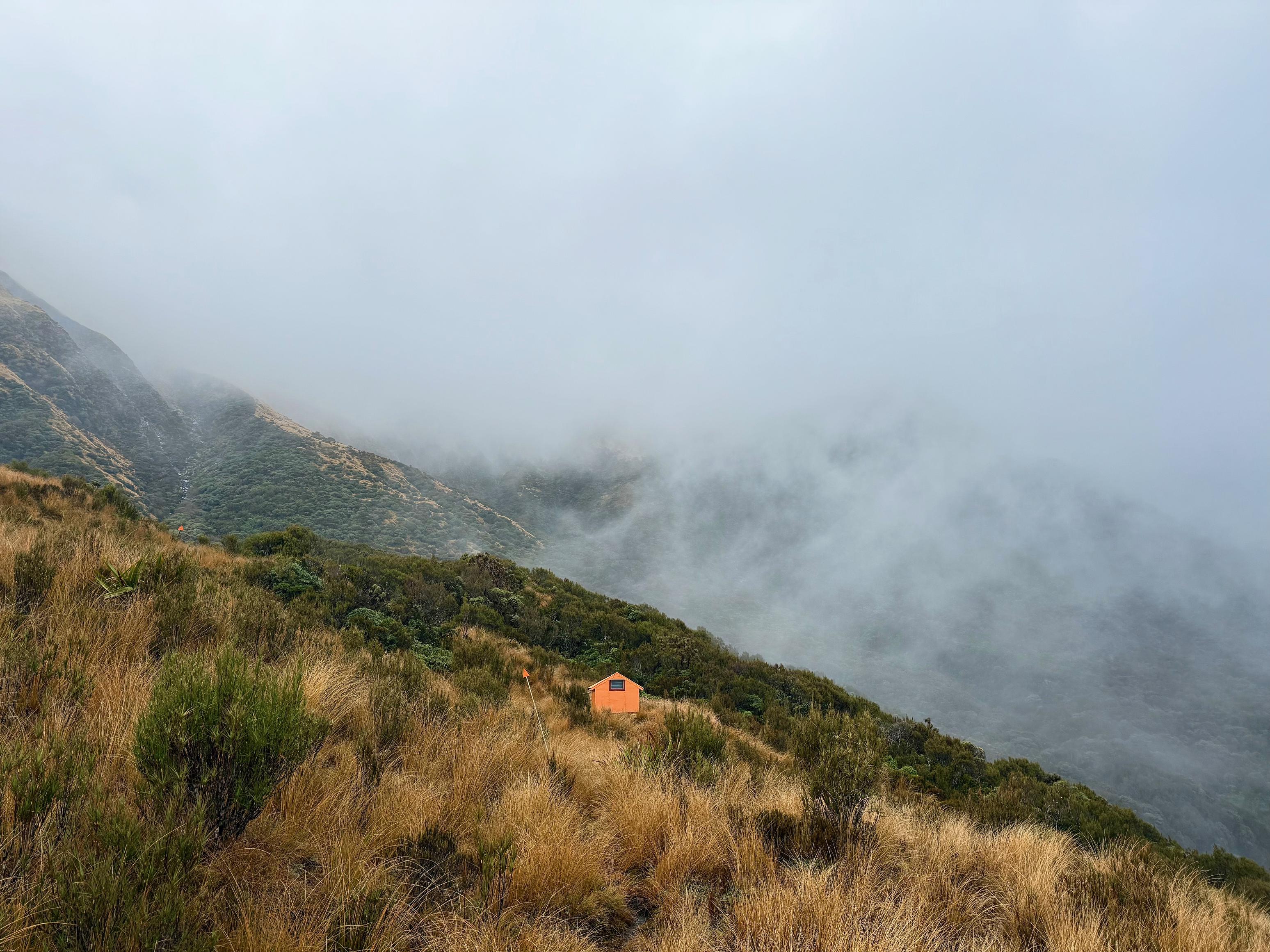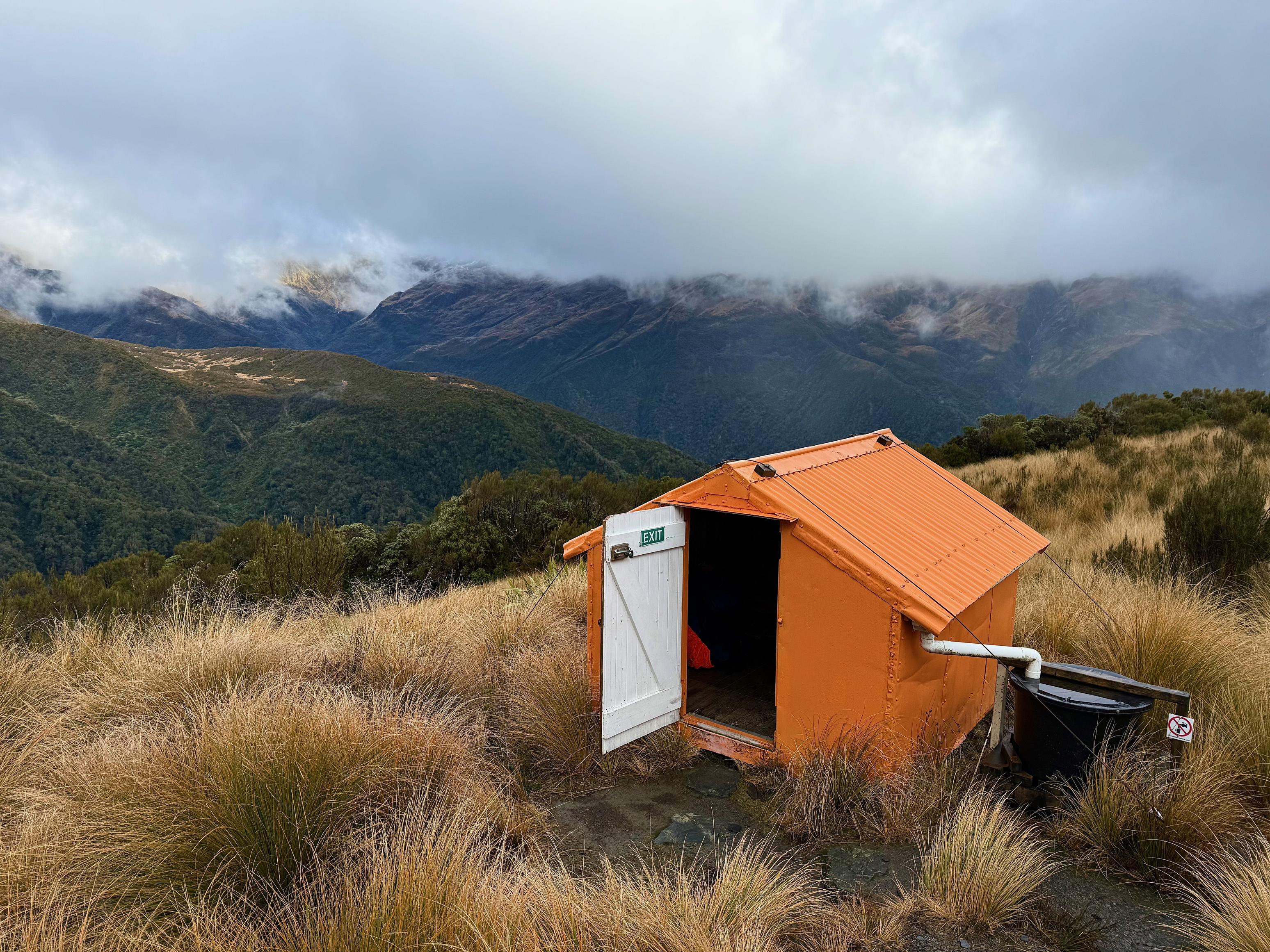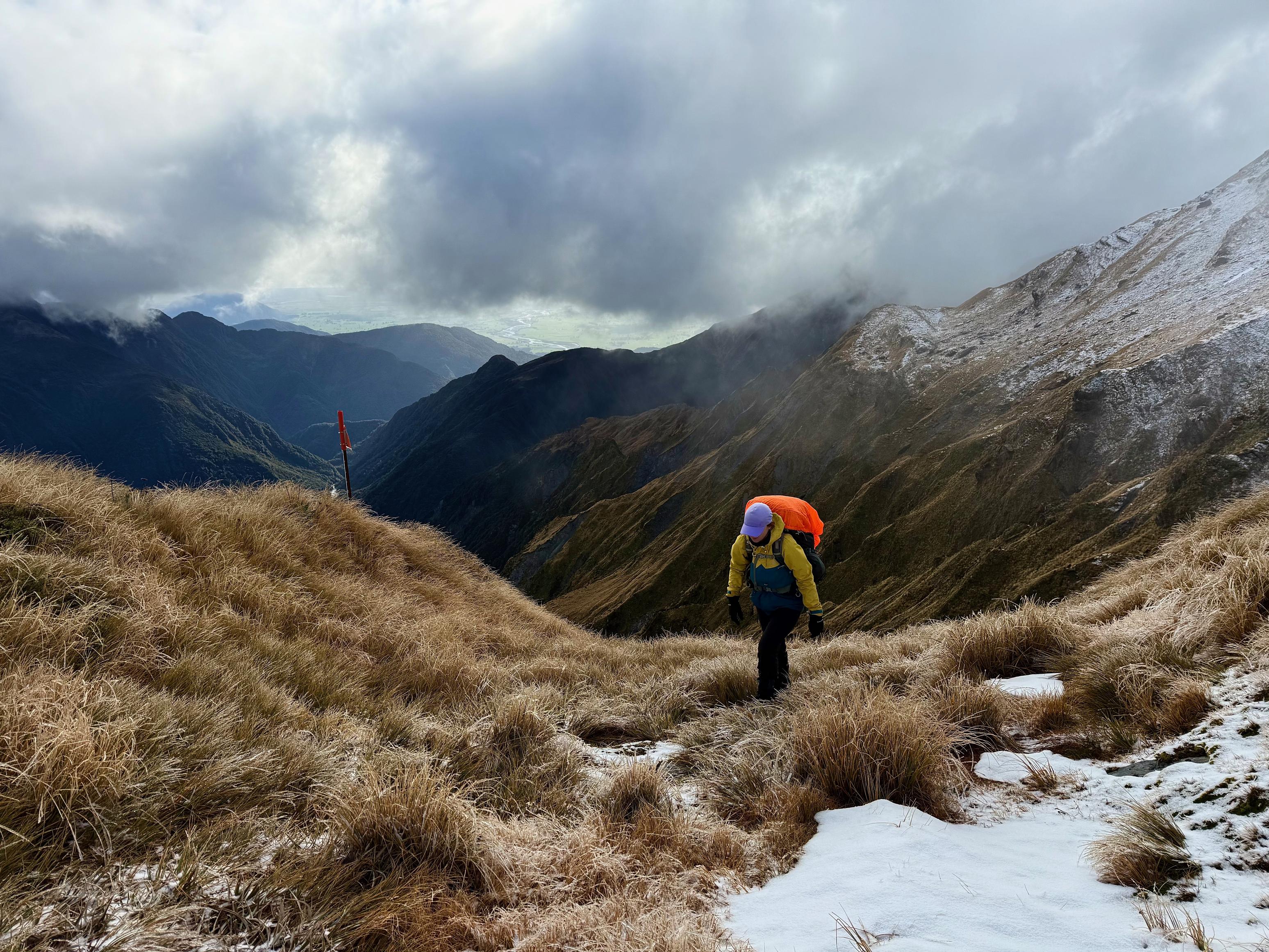 From Adventure Biv the track climbs steeply and can be quite indistinct and overgrown. There are markers aplenty, but that doesnโt mean it is obvious how to get to them. There is a very steep section up an erosion gully before you reach the open tussock. I imagine it would be easier if you were 12ft tall with legs of a giant!