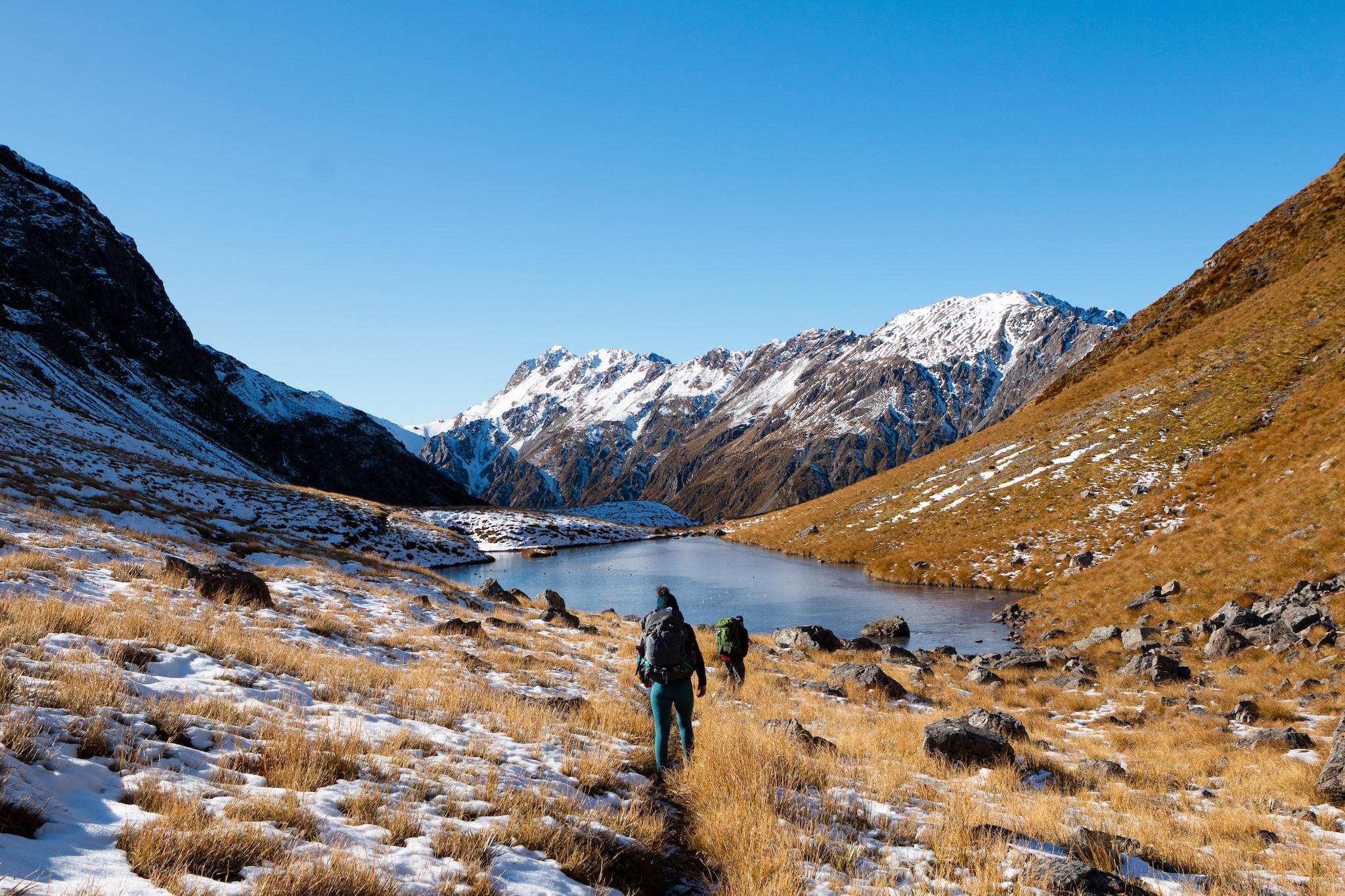 The descent to Otehake River East Branch is very steep but extremely beautiful. It was especially slow-moving for us as there was snow and ice up at Tarn Col and it was very frosty the whole way down. It’s worth taking your time. You will have to cross the river a few times but we avoided wet feet through this section!