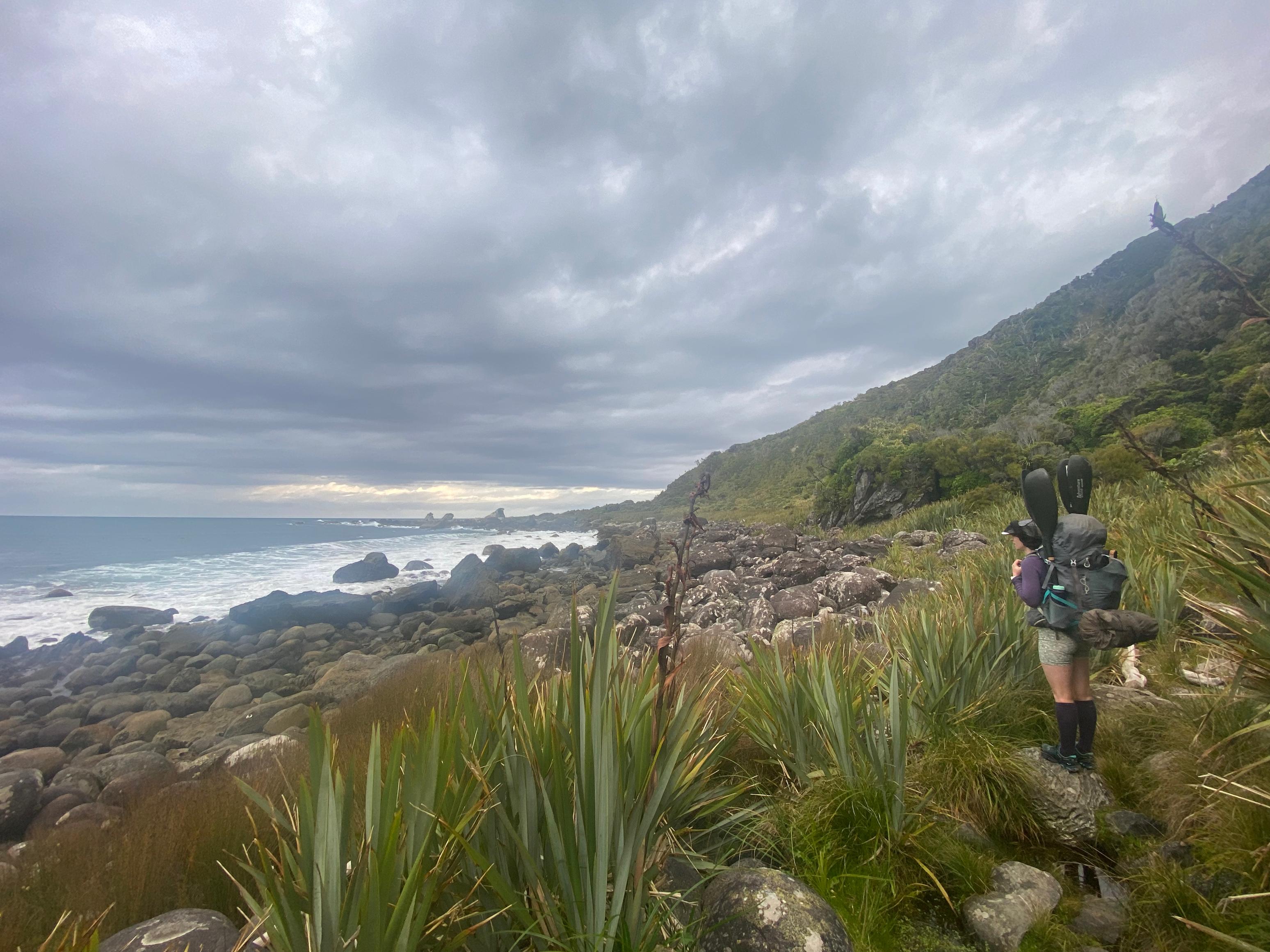 The track is a tad overgrown but better than it used to be according to the internet. The first part around to the beach before Smoky Rock was quite muddly and our long multisport paddles were quite a hindrance for Jen. We ended up carrying them by hand so that she could stop getting caught in trees! Turns out packrafting paddles a short for a good reason. Also, make sure you stop at the seal colony at Long Reef – they are so cute. Don’t bother them, though!