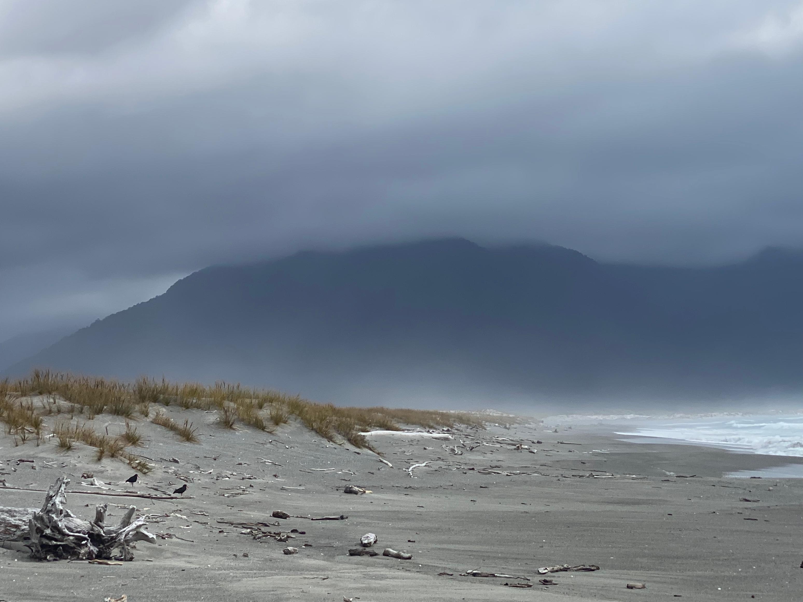 If you look carefully you can spot some private baches (cribs) hidden among the forest on the lakeside. Amazing. We kinda want one. There’s no road access; you have to get there by boat. We took it easy down the outlet (no rapids) past the fancy Martin’s Bay Lodge to the river mouth. The surf was pretty huge and the clouds ominous. In 2020 the storm carried so much water that the river blew through the dunes and moved the river mouth almost 3km south. This had the effect of leaving a lovely lagoon between the mouth and Martin’s Bay Hut, all you have to do is drag your boat across a short section of sand and then keep paddling! The wind had whipped up a bit by this point and we had a slow time paddling across the lagoon, but still, faster than carrying the boat!