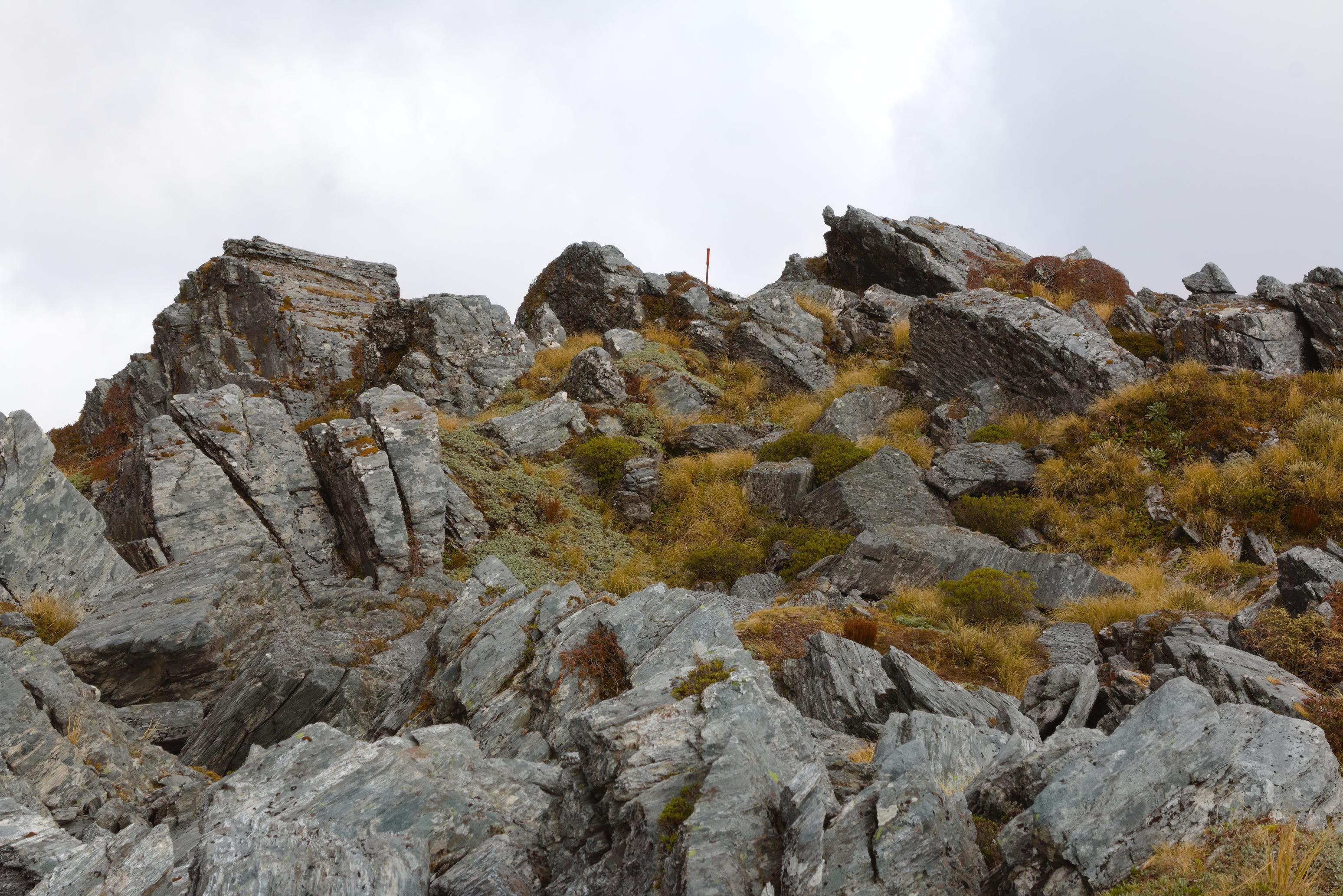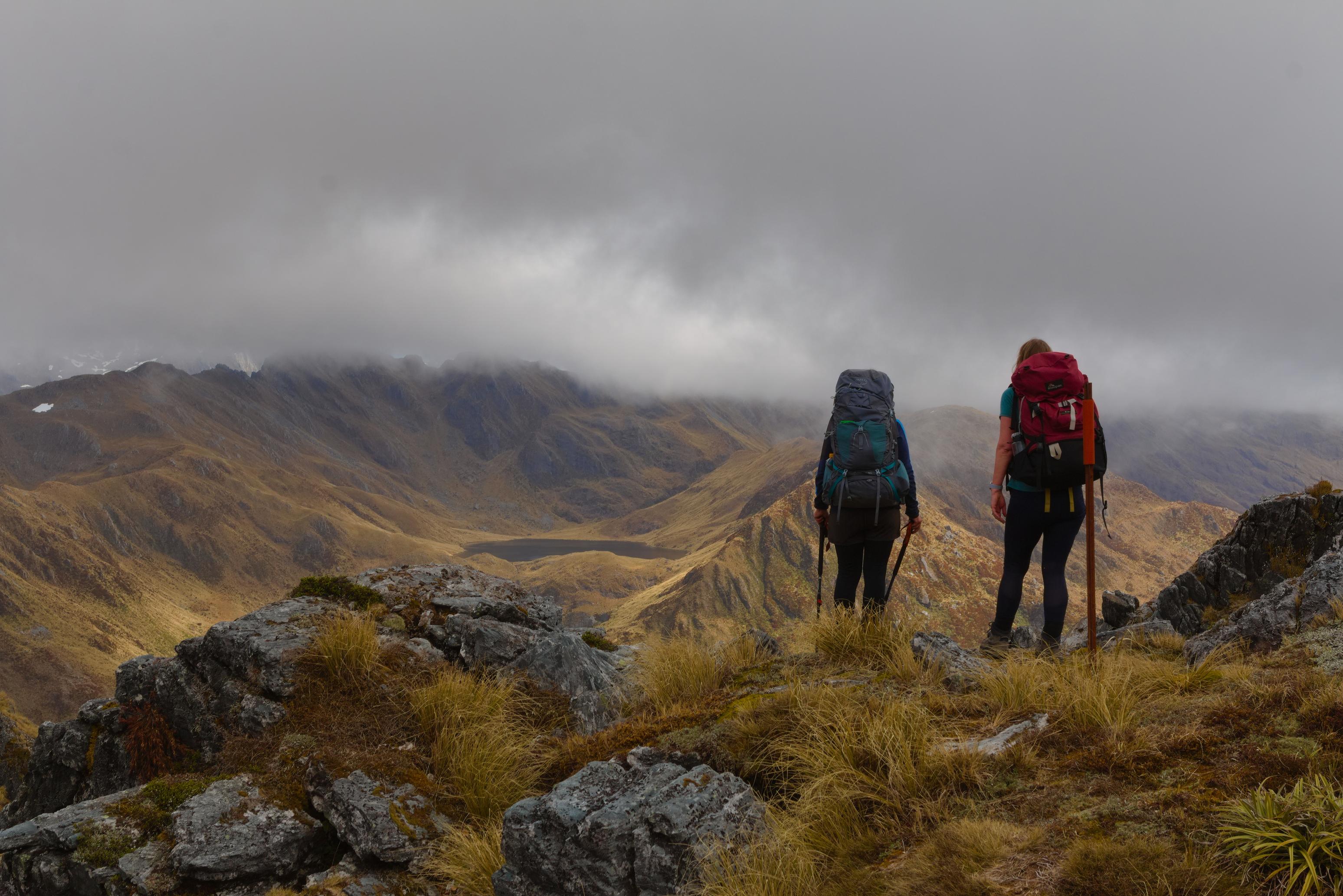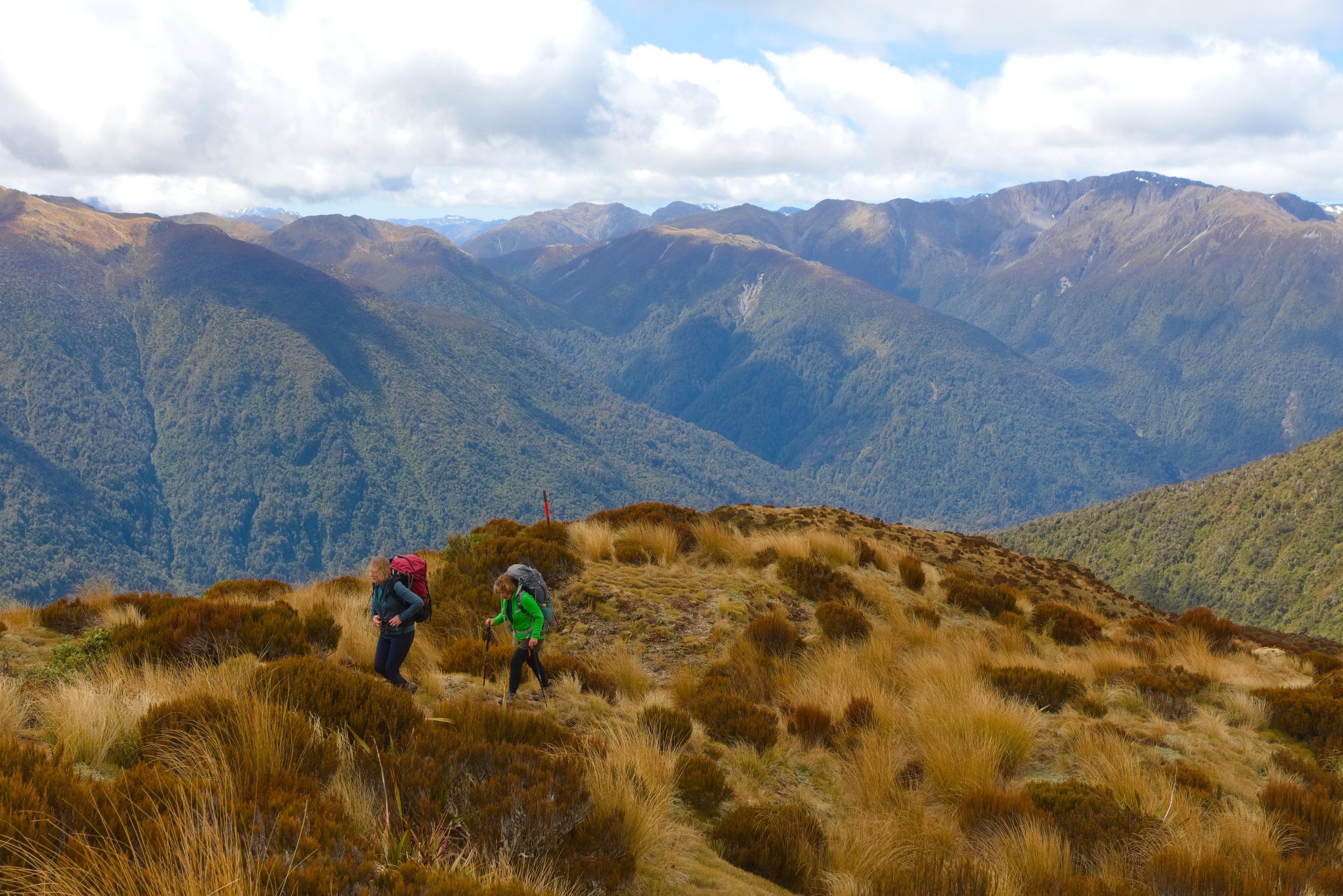 Once we signed in at Gloriavale Christian Community we parked the car and got started. The track starts as a 4WD one before taking a sharp right hand turn up the Brian OβLynne track. This track is very steep with little to no respite until a lunch spot above the treeline. Itβs not particularly airy but would be a quad destroyer coming down. The scrub is dense above the treeline but Justin Le Sueur (dad) has done some trimming in 2022. There is much more to be done but the track is well marked through the trees and scrub. After the lunch spot it enters low scrub and the track fades away as people make their own way across the tops. In the distance you can Point 1251 which is very jagged. It is worth getting a closer look here but donβt forget to side underneath the final point to the saddle and Point 1196. If it is cloudy donβt bother heading for the ridgeline for nice walking and views but instead slowly sidle down towards the saddle.