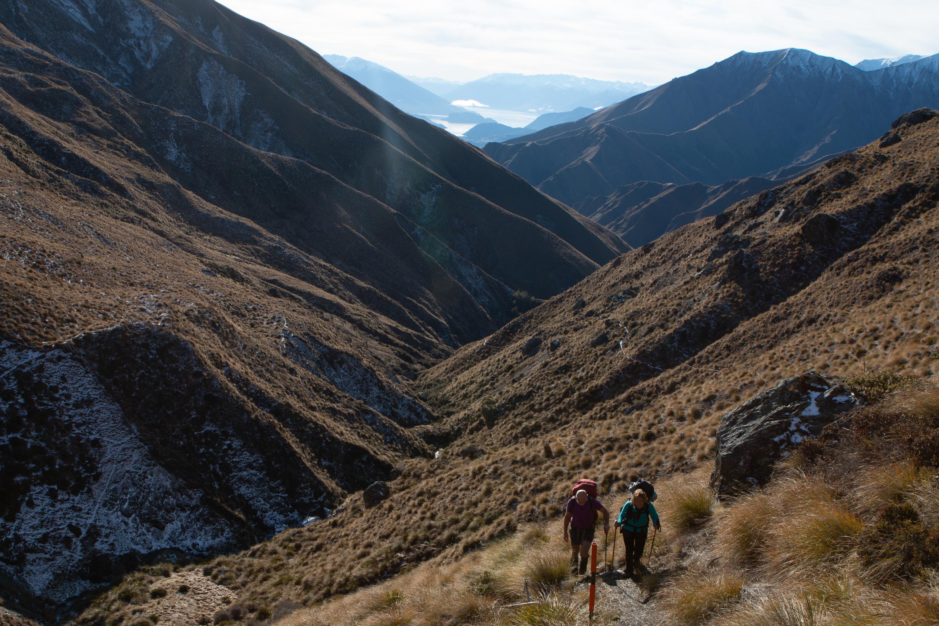 The landscape is pretty awesome through here, and it is well worth remembering to turn around and look down the valley to Glendhu Bay and Lake WΔnaka. The descent from pt. 1267 is steep and for us, snowy/icy. We had to go pretty slow as we didn’t pack any crampons!