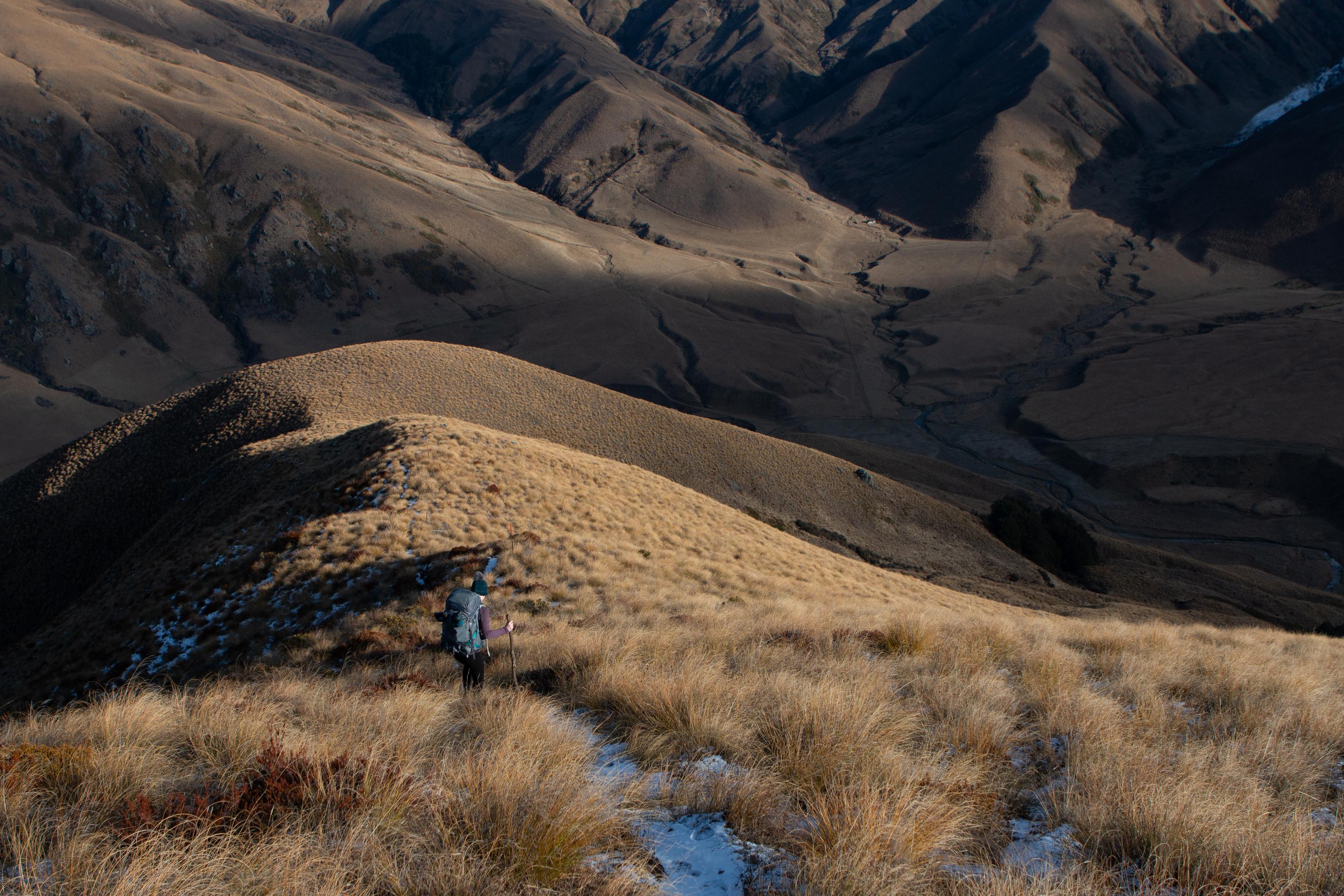 For me this day was equal parts beautiful, and completely and utterly frustrating. There is some pretty epic ridgeline travel and some stunning views up and down the valley. However.. the track felt a bit manufactured. After reaching a saddle between pt. 1540 and pt. 1261 it descends 450m steeply into a valley, before climbing straight back up the other side. A lot of gruelling climbing have been could be avoided if the track had chosen to sidle across. Ah well, not our decision to make!