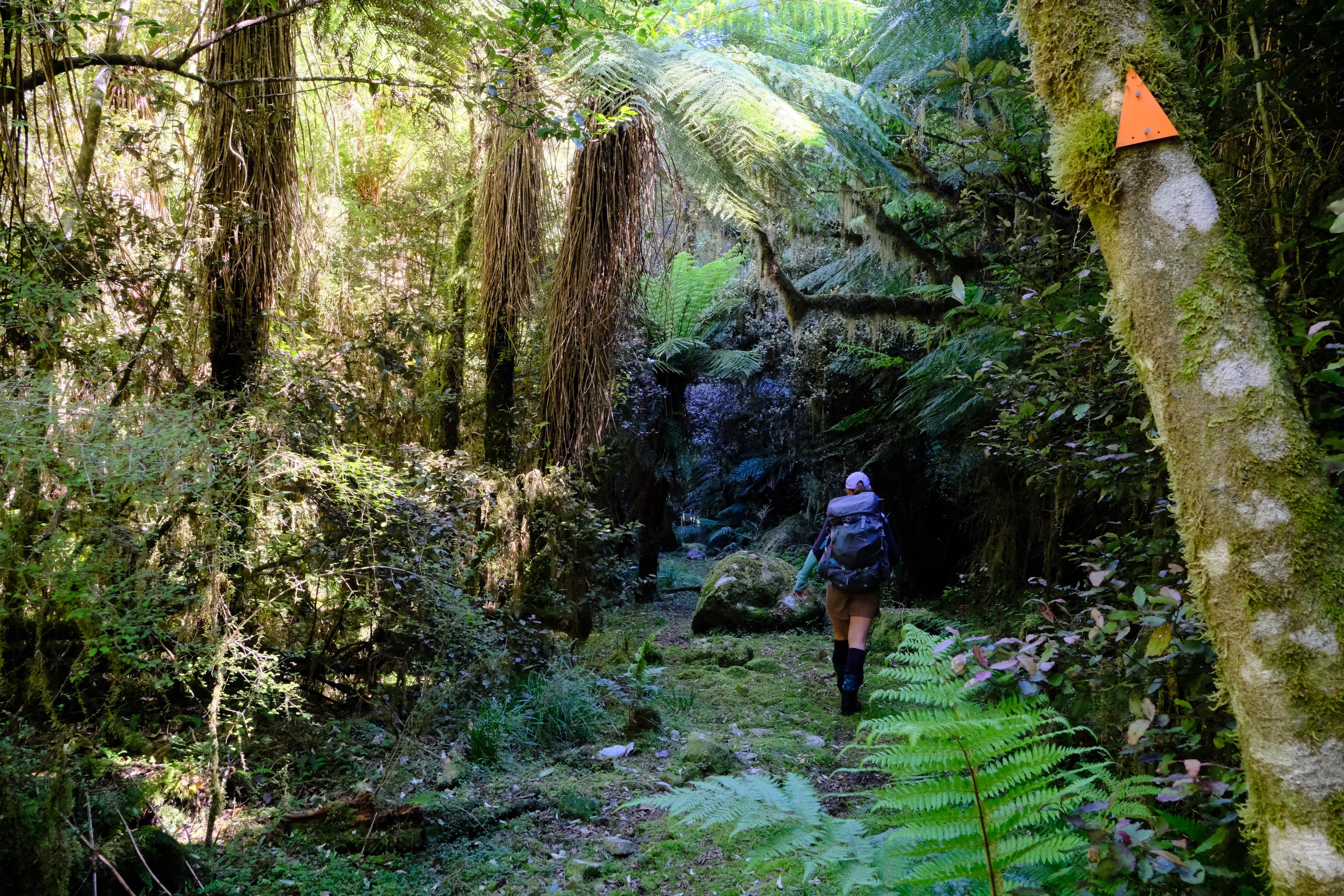 What a day! We woke early but were slow to break camp, having forgotten about the admin of packing down a tent. We hit the track around 8 am and for the first few kilometres, it was very nice, well-formed and in beautiful bush. We even saw another three whio!
