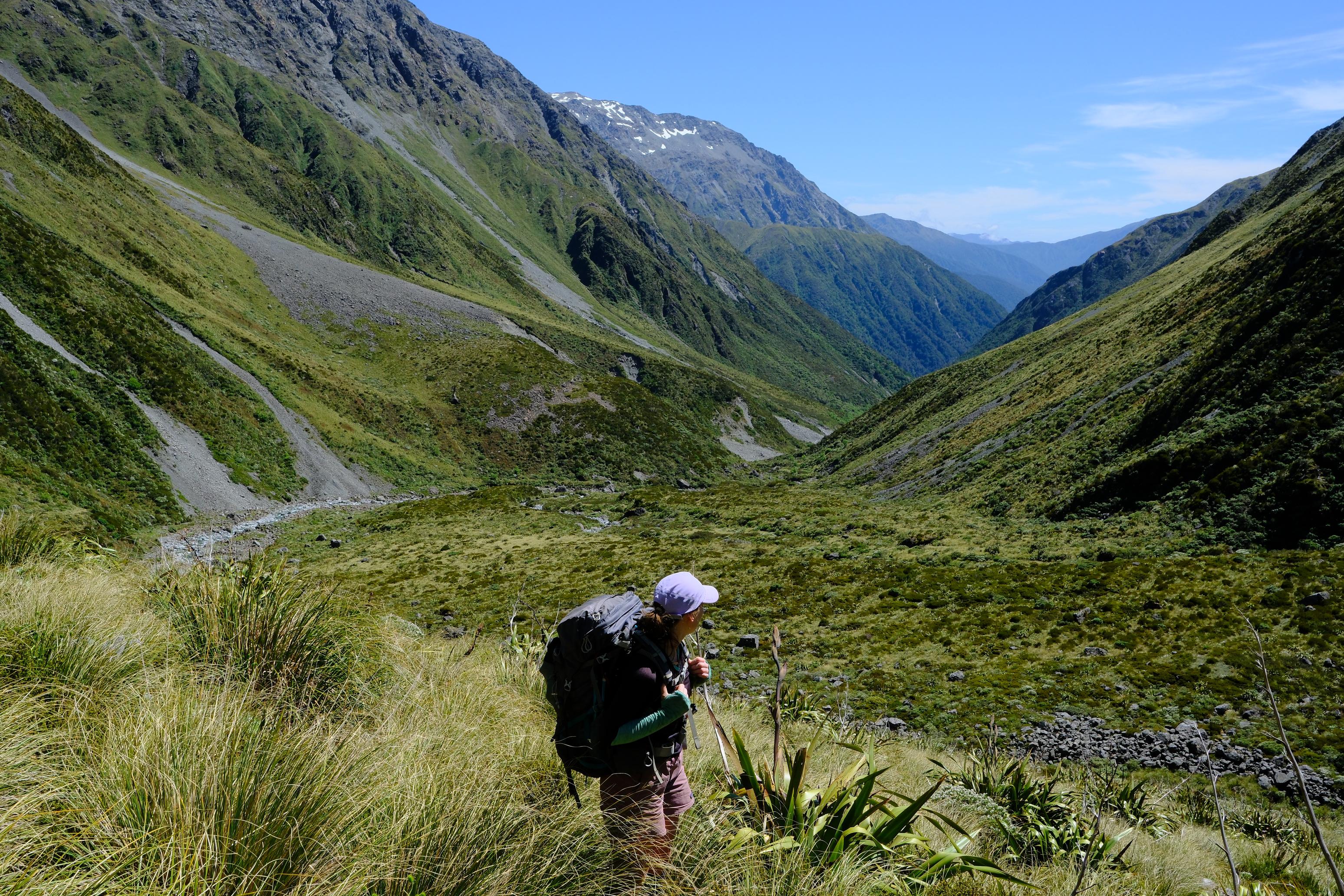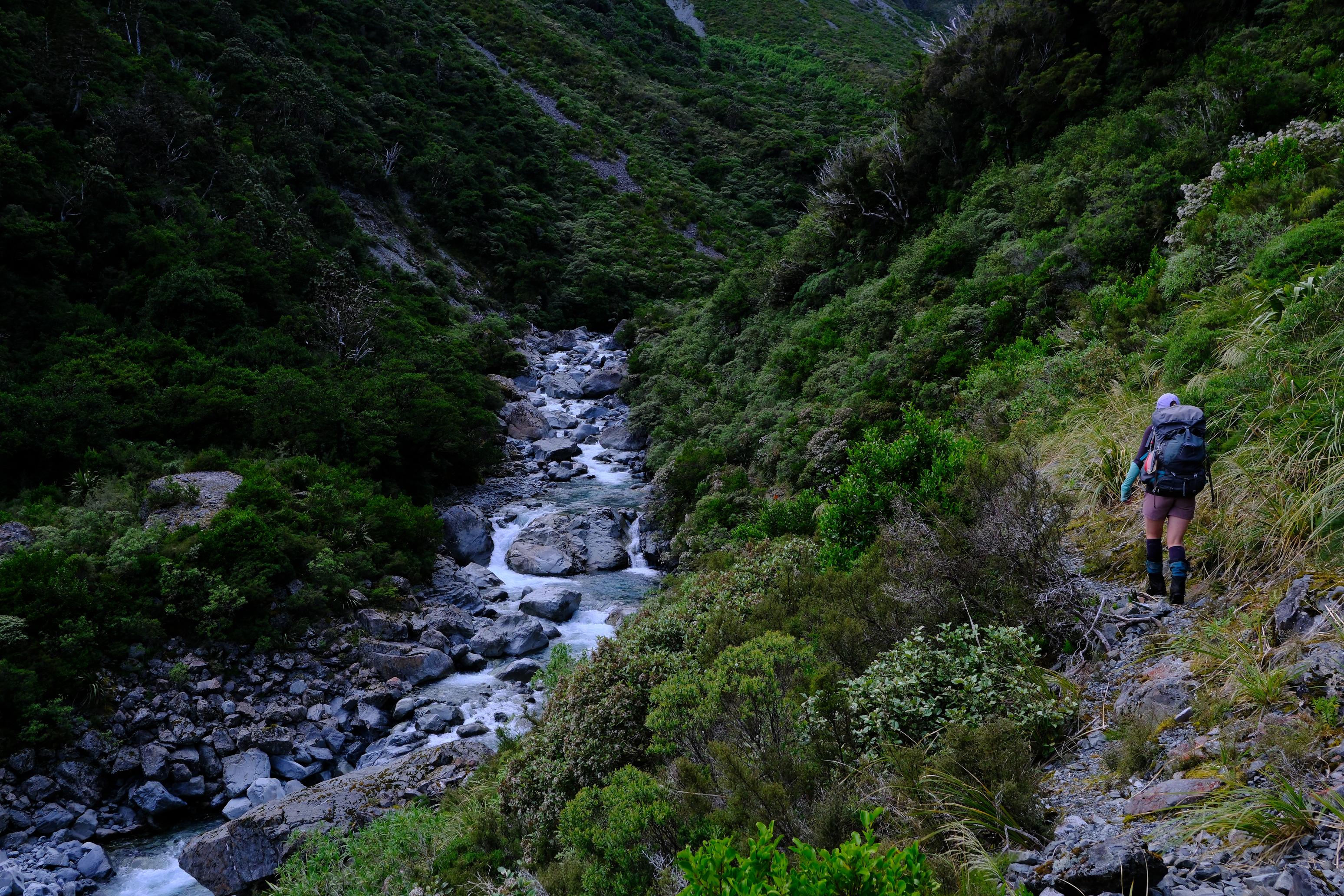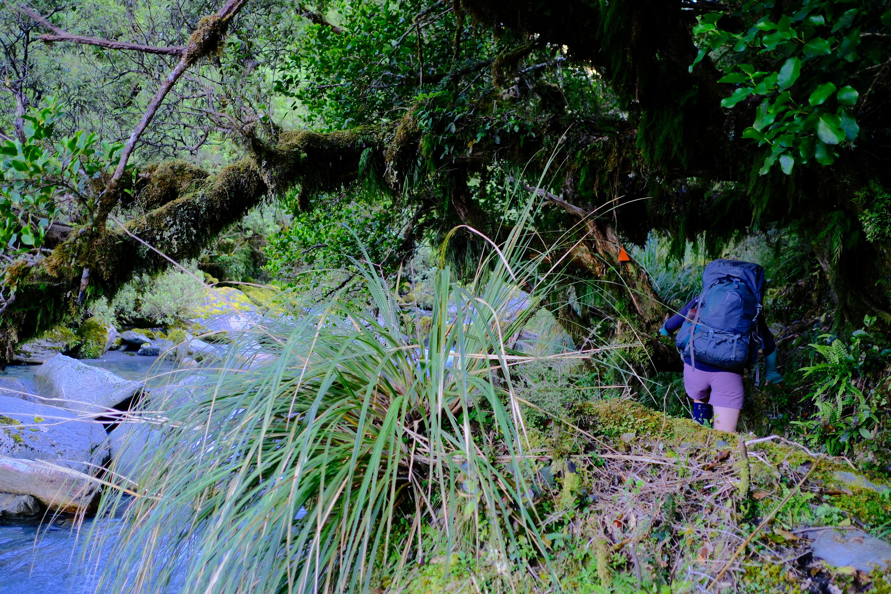 We did, unfortunately, miss the turnoff for the track to Harman Pass. But, we blame the orange triangle on the opposite side of the creek upstream of the turnoff. Crazy! Having backtracked and sent it straight up the hillside to intercept the actual track the rest of the ascent to Harman Pass was totally fine (if steep). The turnoff is somewhere around -42.931793, 171.4153 on the true left.