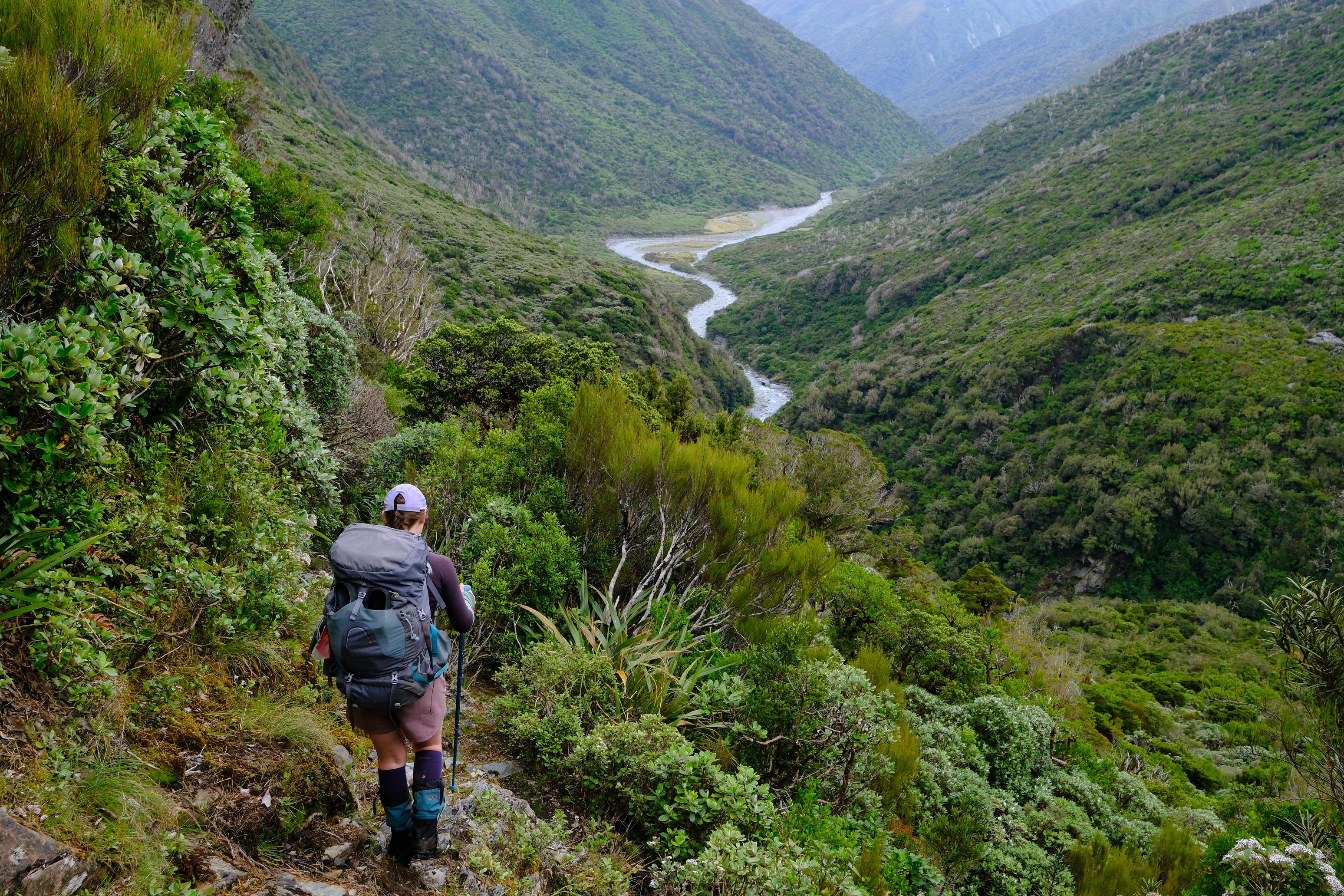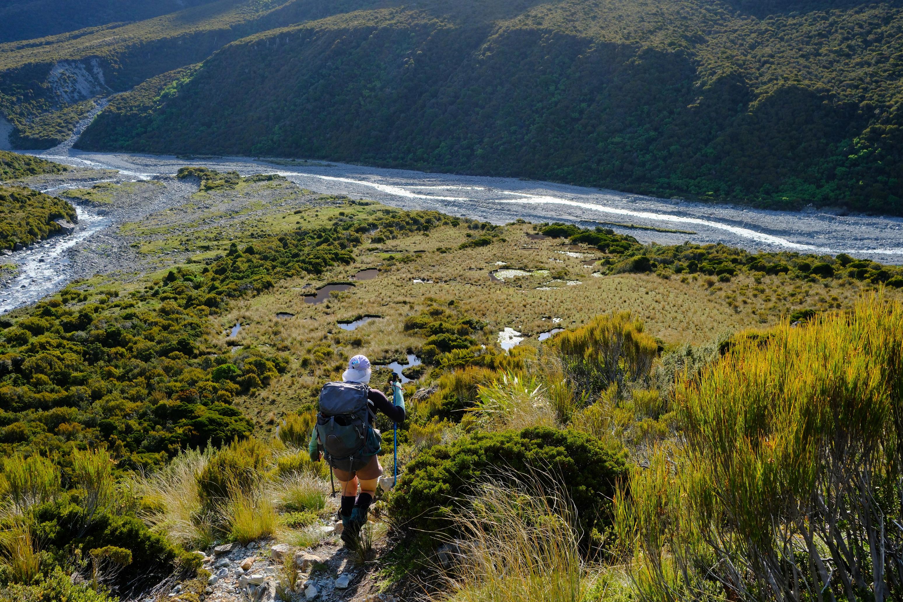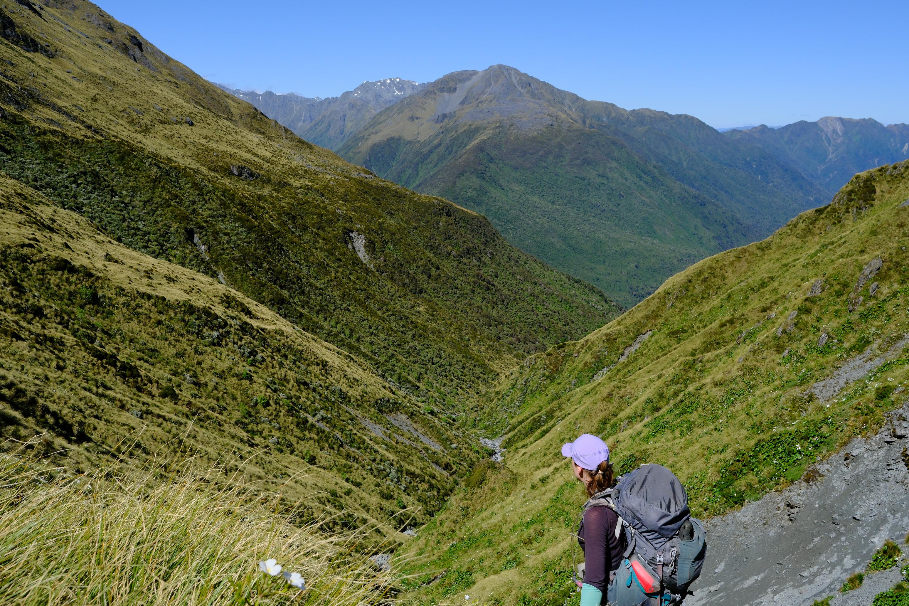 We did, unfortunately, miss the turnoff for the track to Harman Pass. But, we blame the orange triangle on the opposite side of the creek upstream of the turnoff. Crazy! Having backtracked and sent it straight up the hillside to intercept the actual track the rest of the ascent to Harman Pass was totally fine (if steep). The turnoff is somewhere around -42.931793, 171.4153 on the true left.