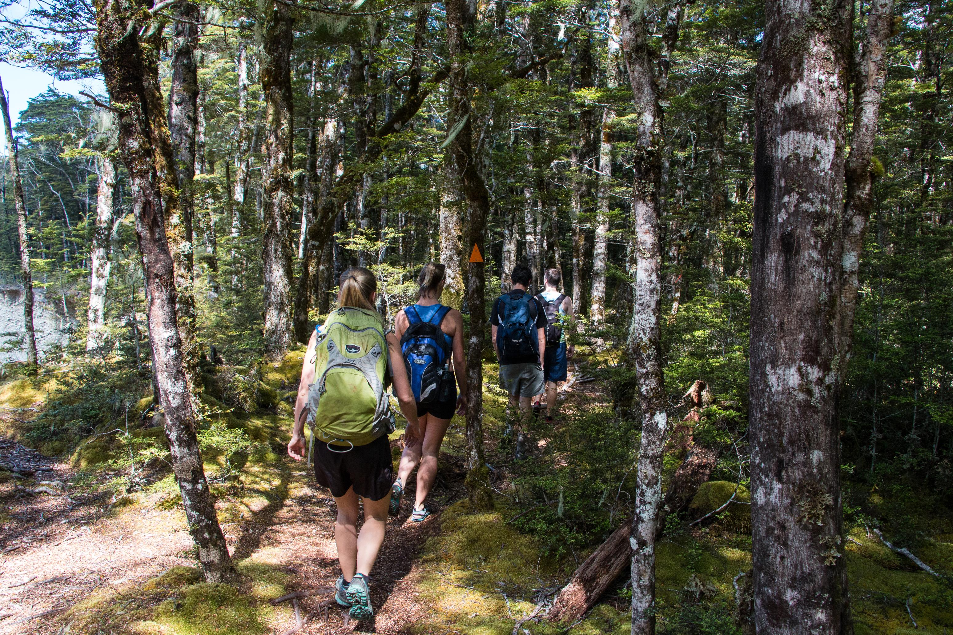 The track starts nearby Palmer Lodge and it is rather obscured on the West side of the road. There is sometimes a homemade wood sign to show you the way because the DOC one is not the most visible. The track starts by crossing the Lewis River on a great wee bridge before climbing gently around the corner of the Nina Valley. The ground through here is very marshy and boggy so take care - it does get better!