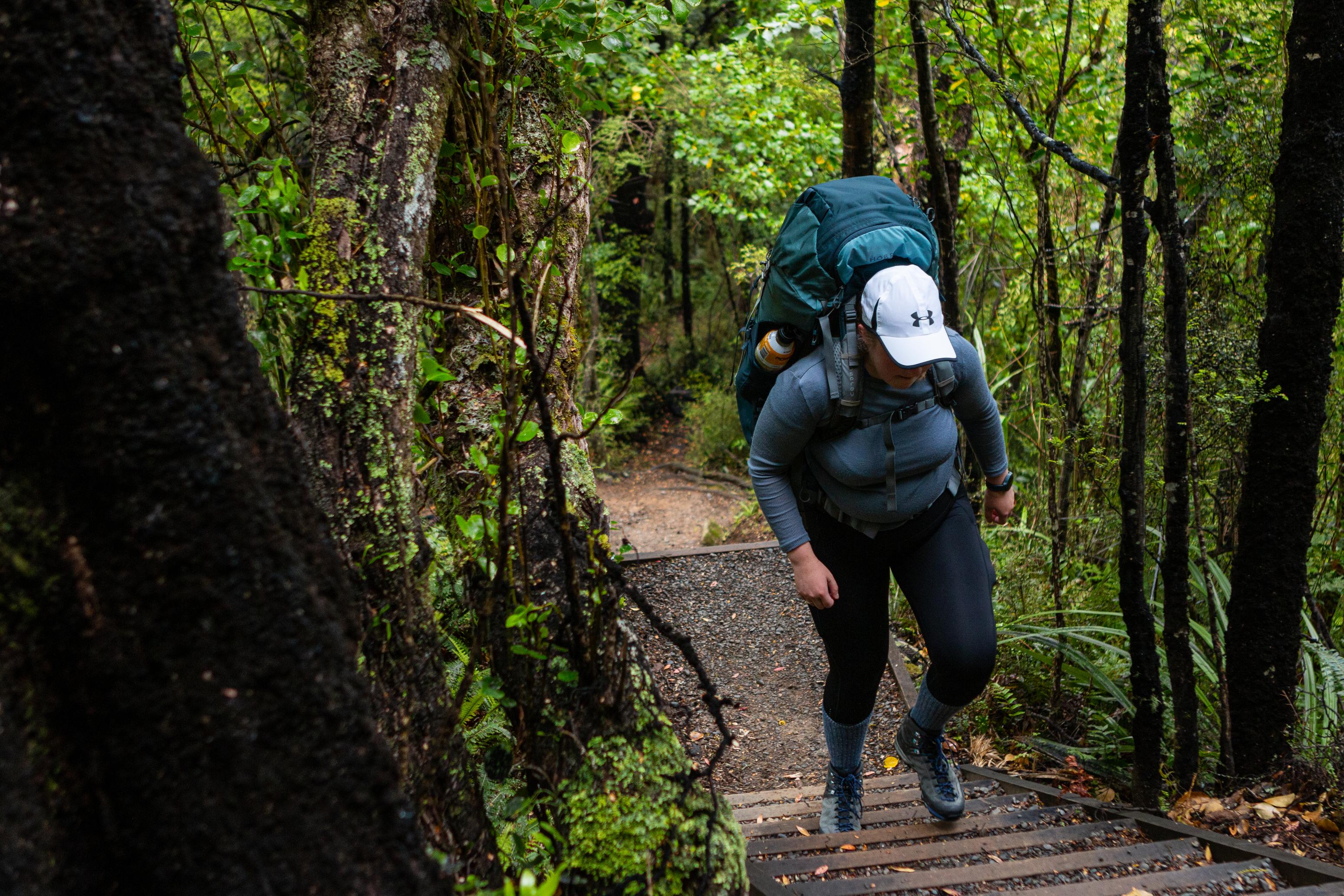 The track starts in some beautiful dense bush where it climbs steeply up from Sharplin Falls Carkpark to Duke Knob. Later on the track will spend some time in the river, but for now it has to go around Sharplin Falls and Gold Smith Rapids.
