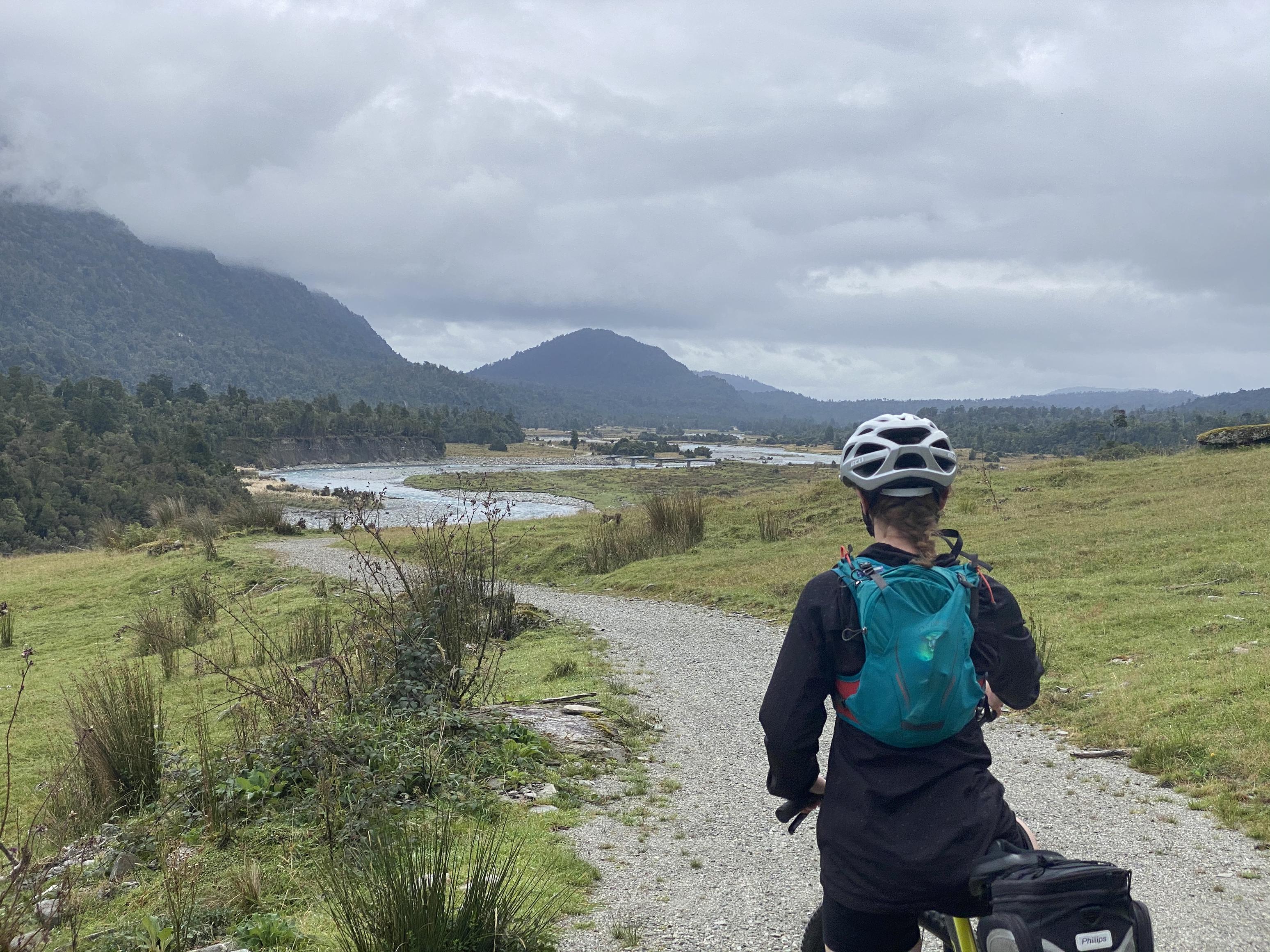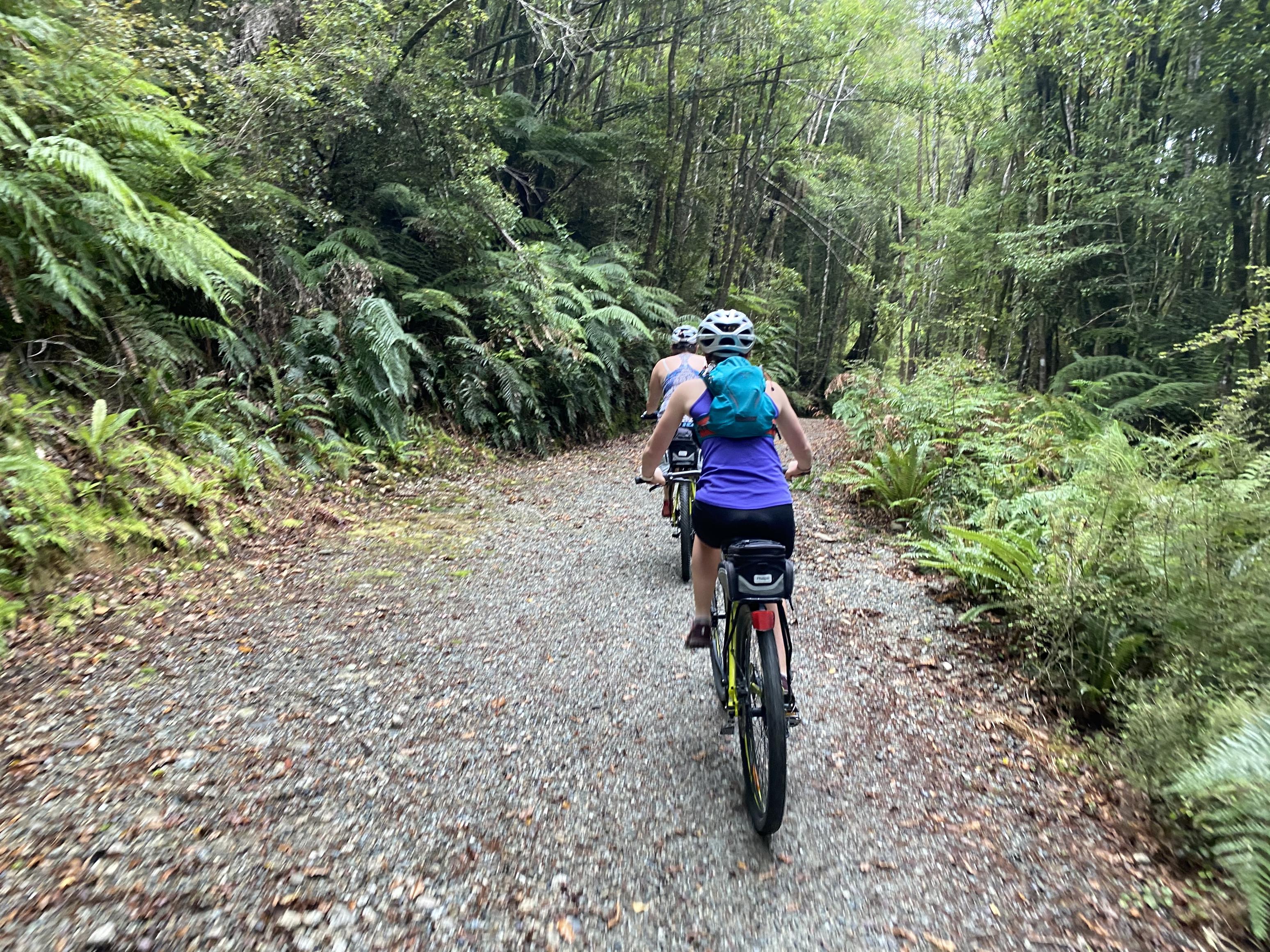The trail then descends into Cowboy’s Paradise - a place of dubious reputation. You certainly get quite a, uh, vibe when you enter town. Not somewhere I’d choose to stay the night but we indulged in some hot chips before continuing on. There are some great switchbacks as the track descends down to Milltown Road (gravel). It follows Milltown for a number of kilometers and even has a small climb around the side of Pyramid Hill. From there is joins Hans Bay Road around the north end of Lake Kaniere. We took a small break from riding and walked down the little track that looks down from the head of the lake - well worth it!