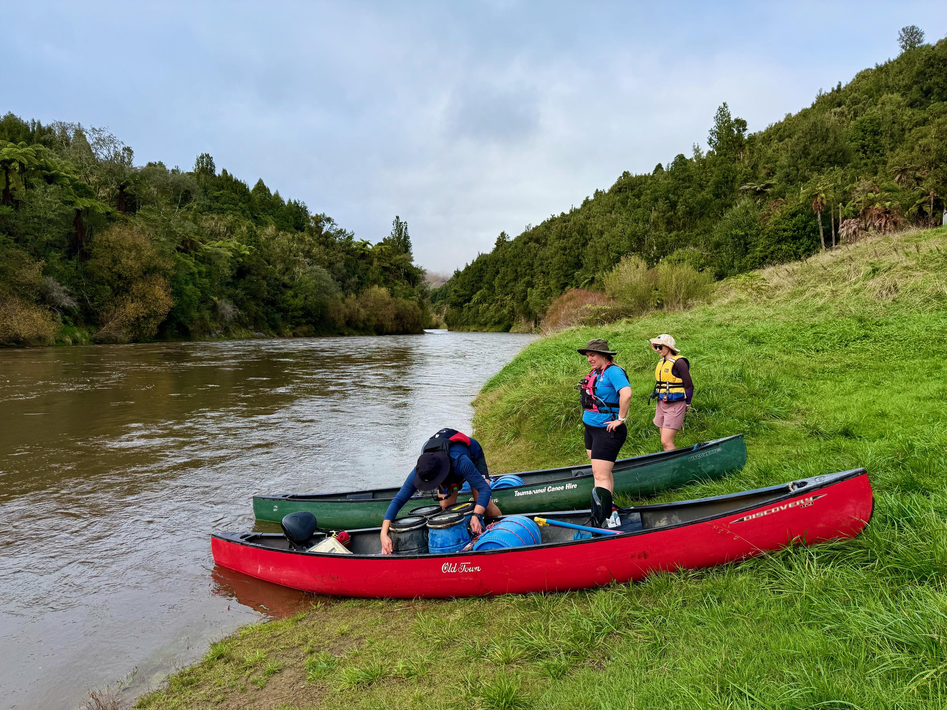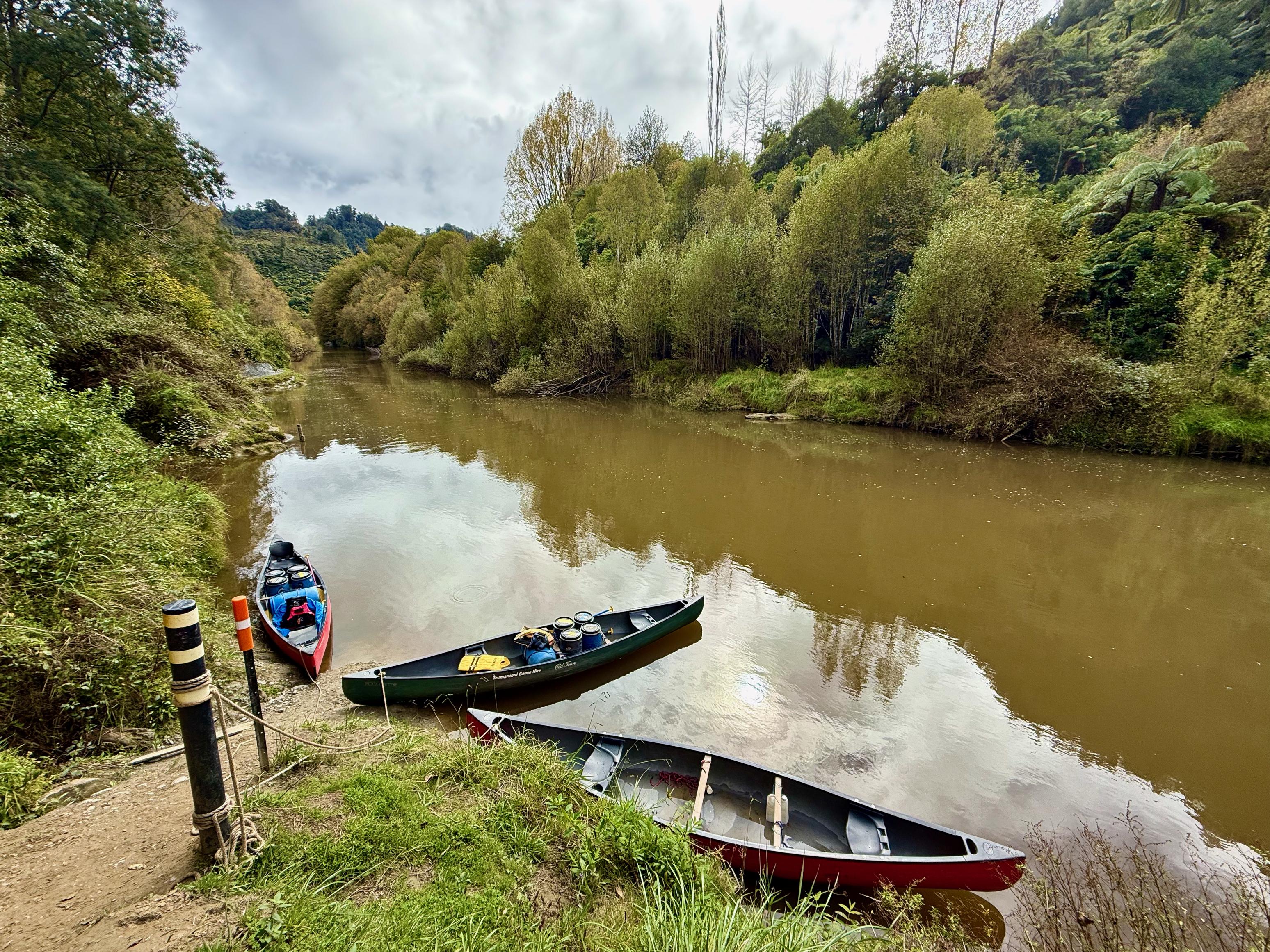 From there the river was actually quite exciting, with a couple of braids to contend with, a few more rapids, and some undercut rocks on the banks. There were no more unintentional swims and we soon reached the Pipiriki pull out where we found the shuttle waiting for us. We emptied the boats of all our possessions, helped ourselves to a homemade muffin and juice (thanks, Taumarunui Canoe Hire!). After enough people had arrived to fill up the van and canoe trailer, we headed off back to Taumarunui.