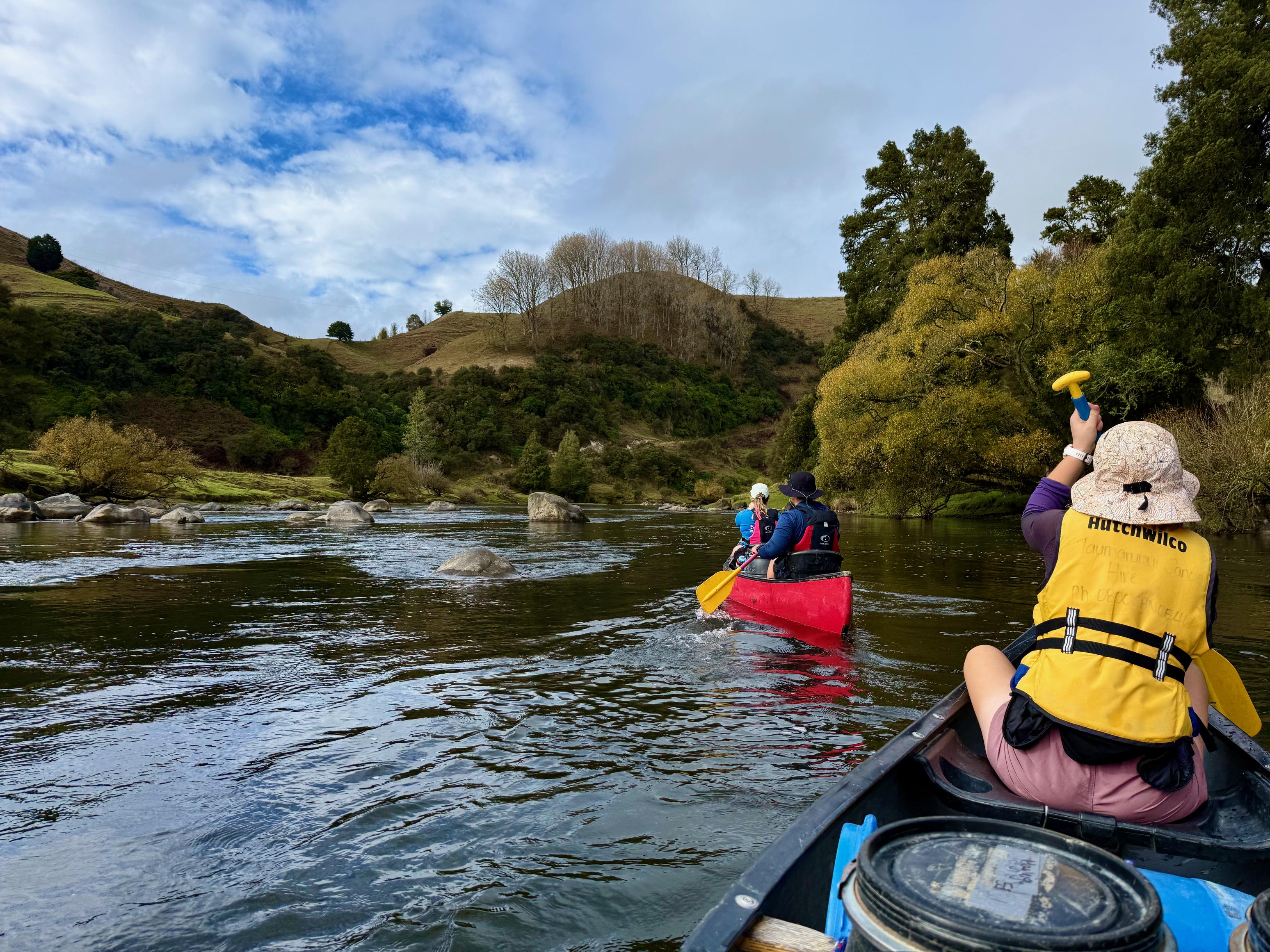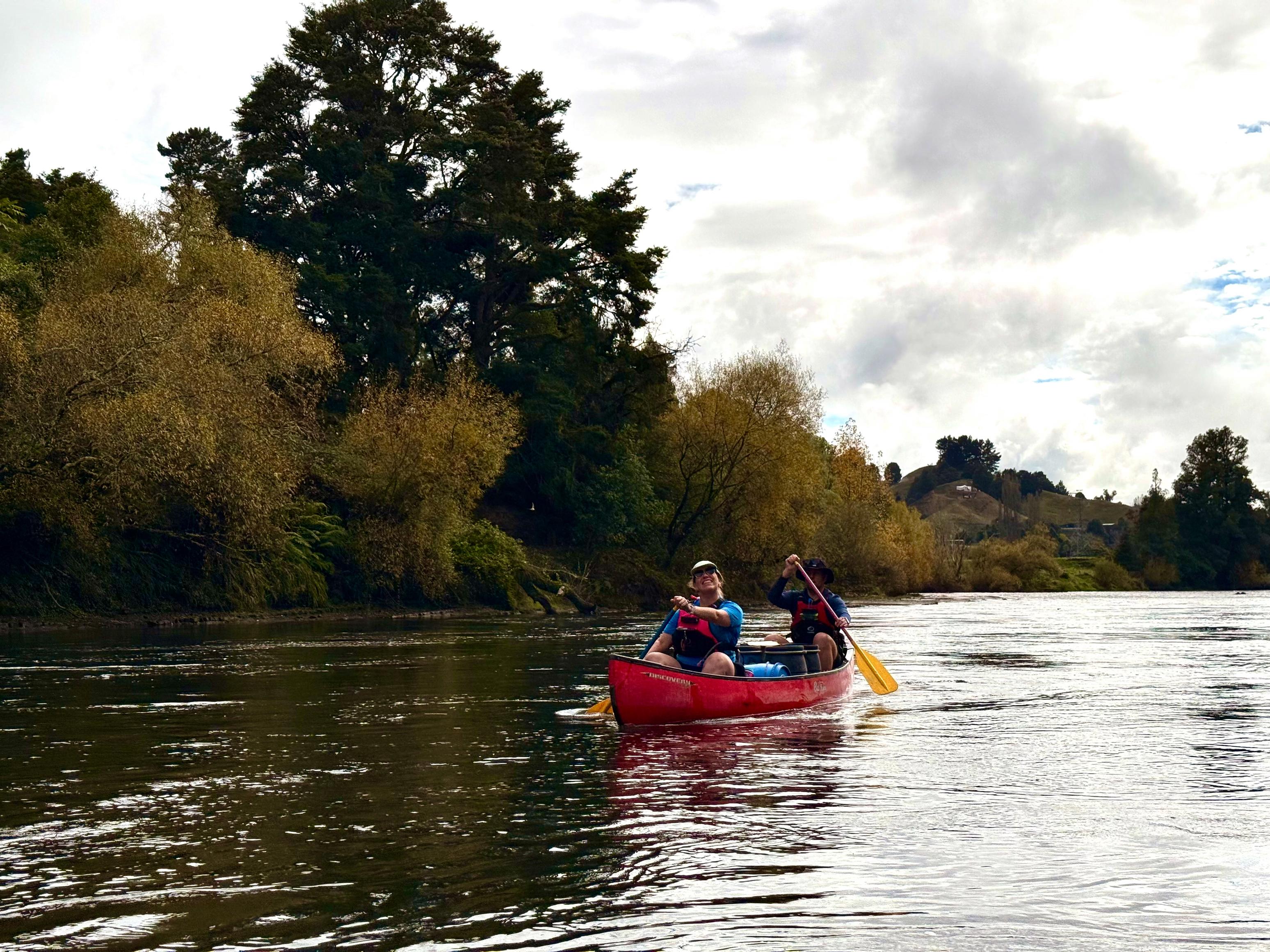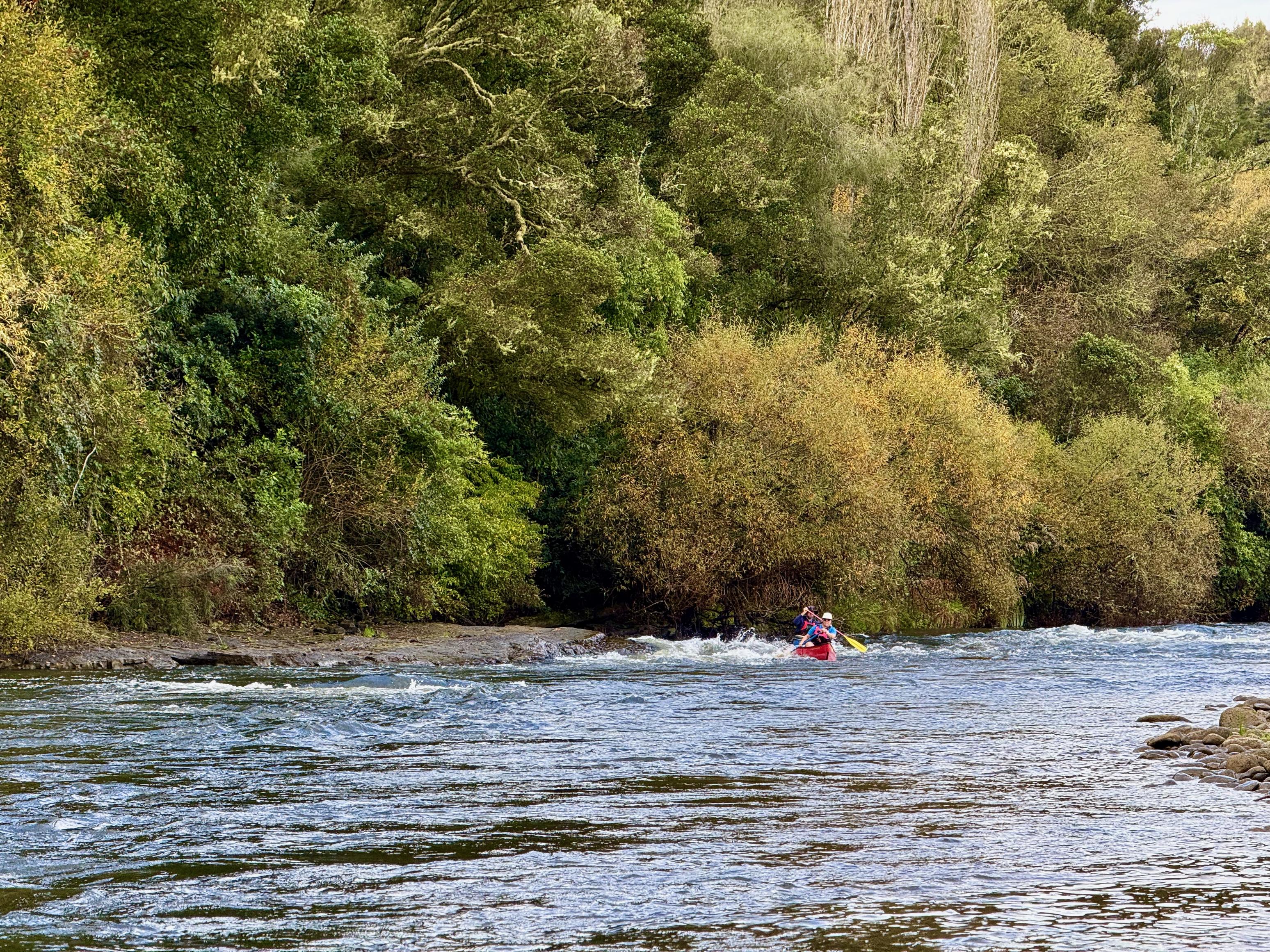 Just around the corner from Aratira are the Ngaporo and Autapu rapids which were great fun. We knew it was coming up but weren’t quite sure when and accidentally blundered into it. Thankfully, we got through unscathed (had to bail out the canoe, though). Next up were Hayleigh and Tim who got fairly swamped partway through but made it through upright. Then, we waited for the couple who started on the same day as us, but they didn’t get through either. I’m fairly certain it was just luck that Jen and I got through!