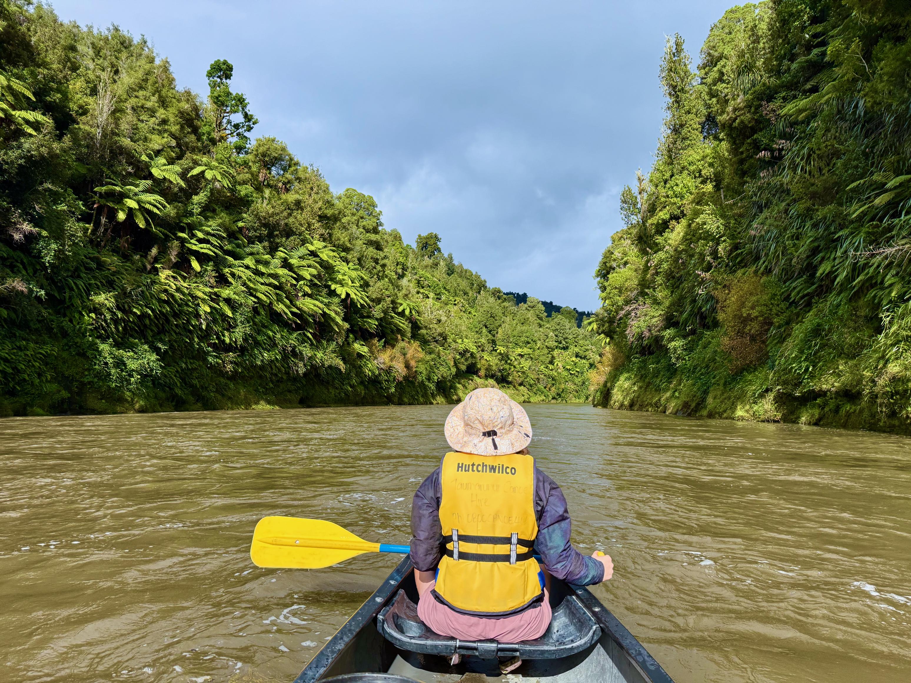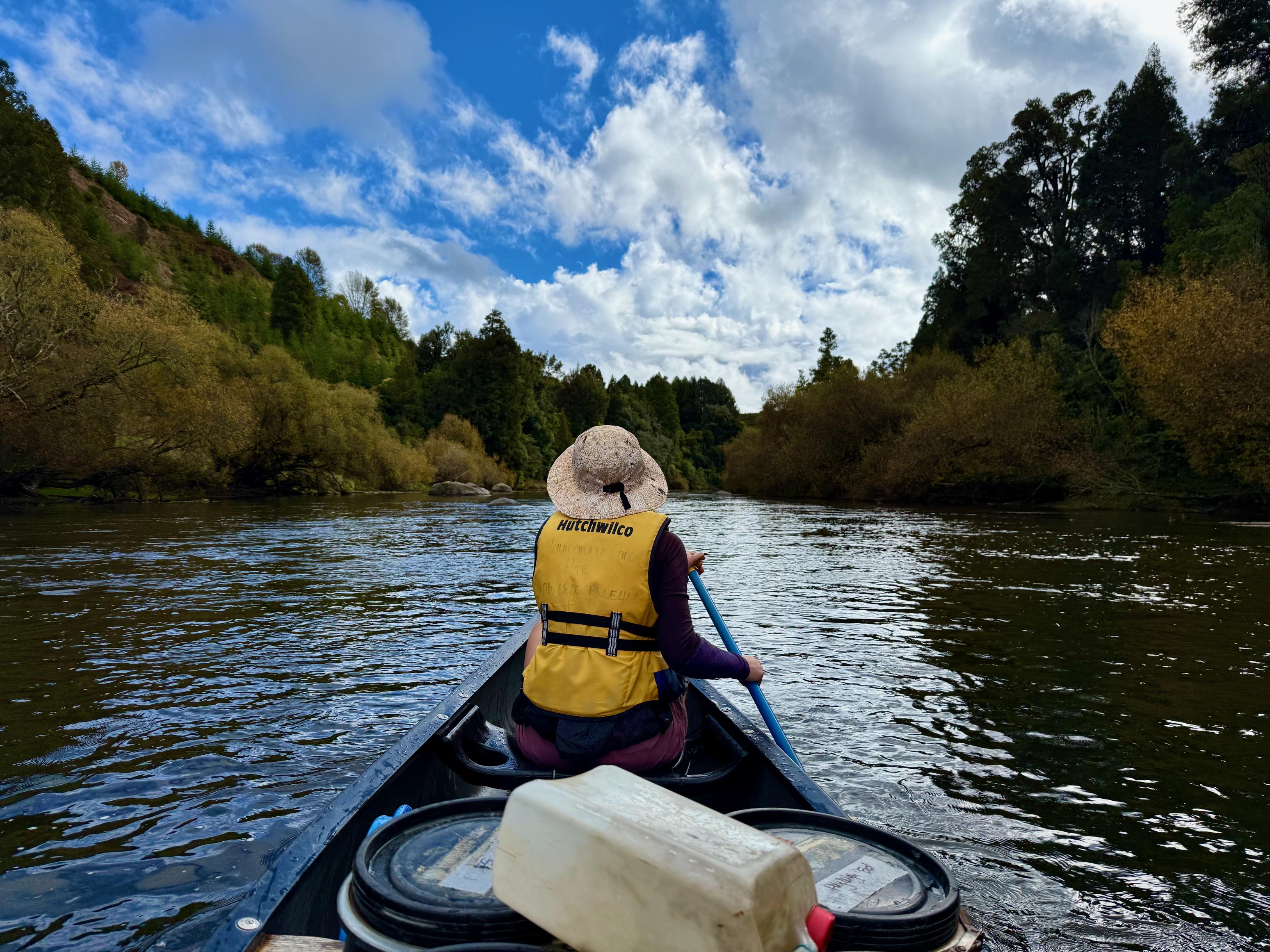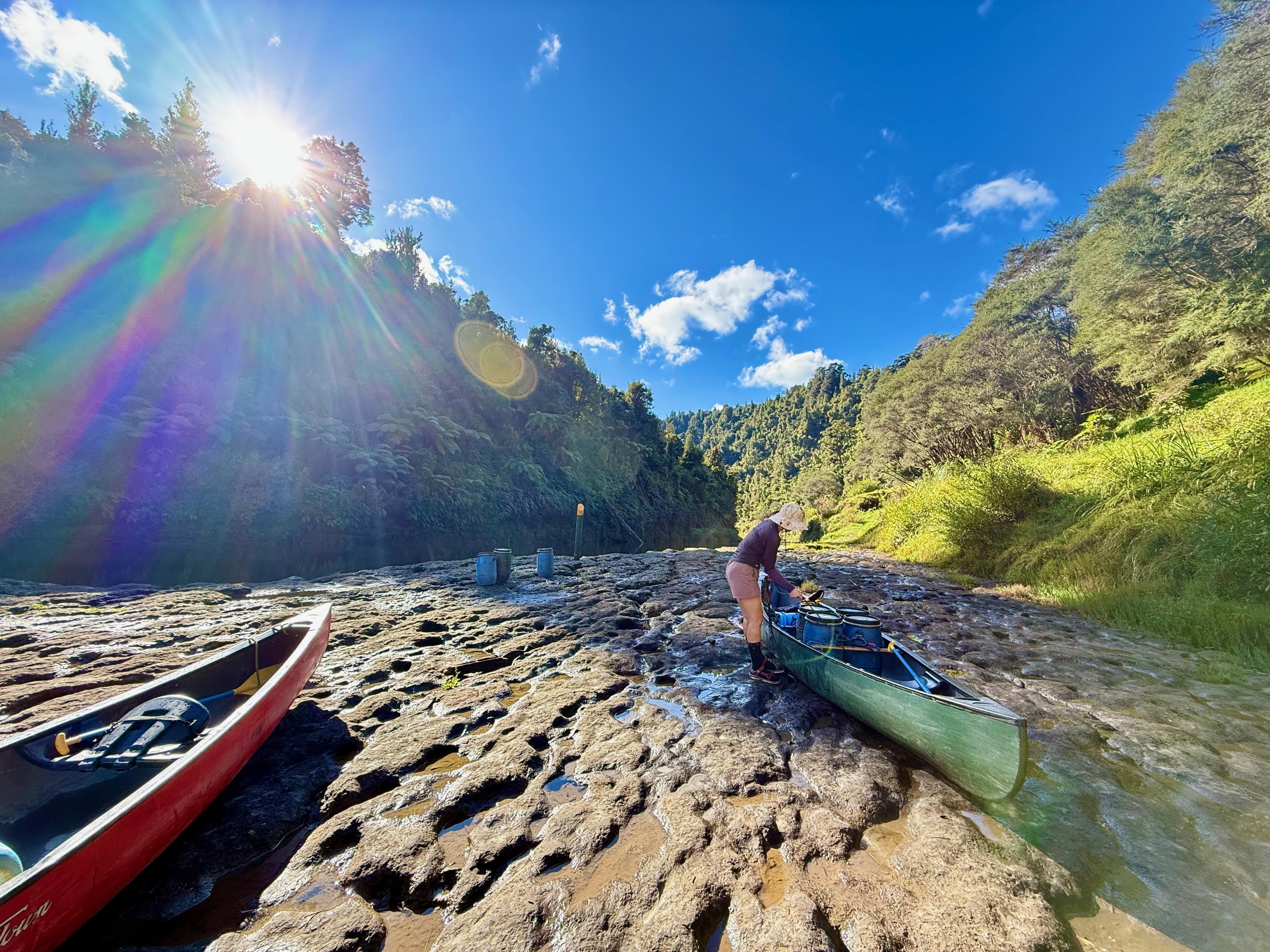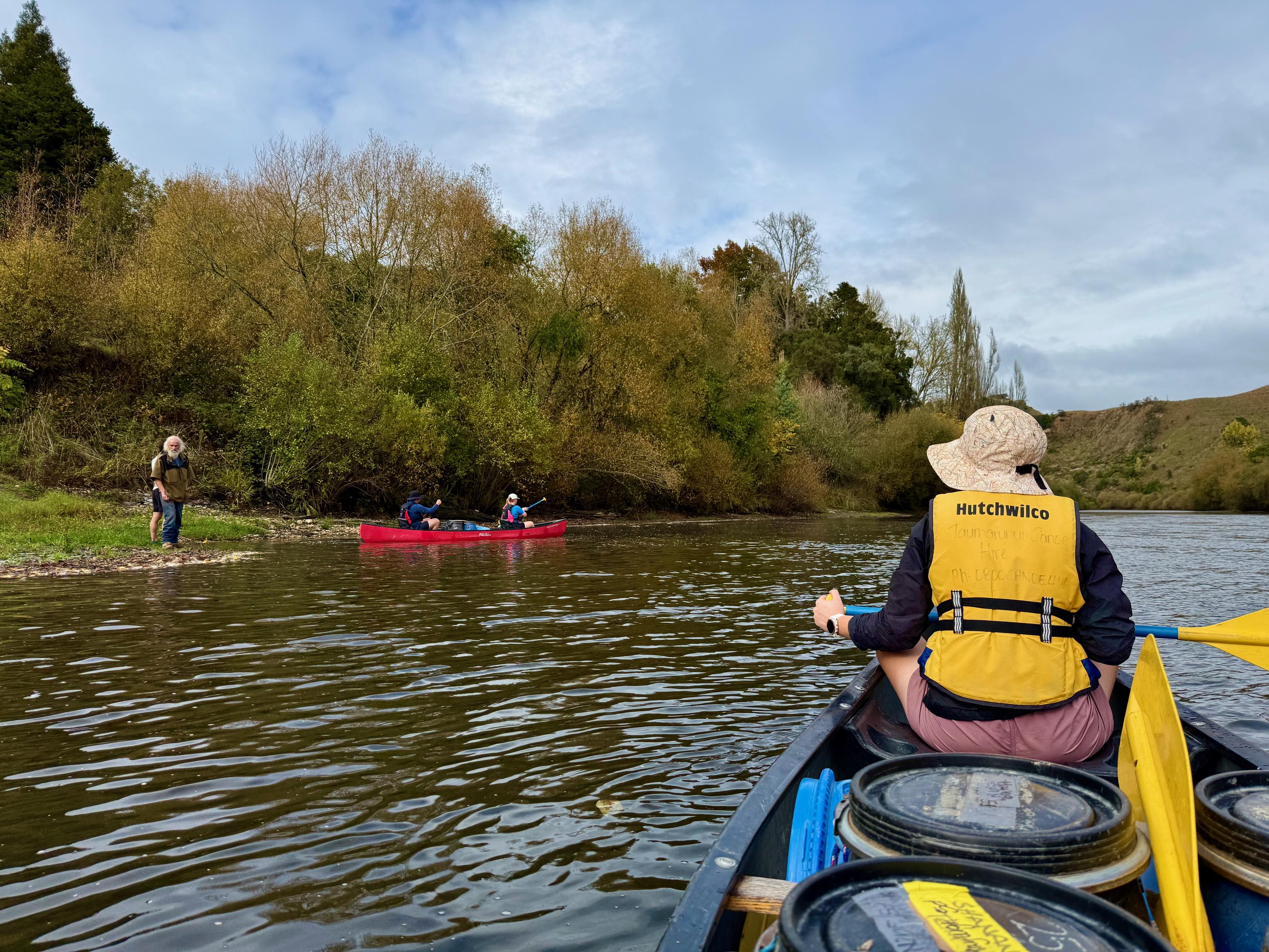 Just around the corner from Aratira are the Ngaporo and Autapu rapids which were great fun. We knew it was coming up but weren’t quite sure when and accidentally blundered into it. Thankfully, we got through unscathed (had to bail out the canoe, though). Next up were Hayleigh and Tim who got fairly swamped partway through but made it through upright. Then, we waited for the couple who started on the same day as us, but they didn’t get through either. I’m fairly certain it was just luck that Jen and I got through!