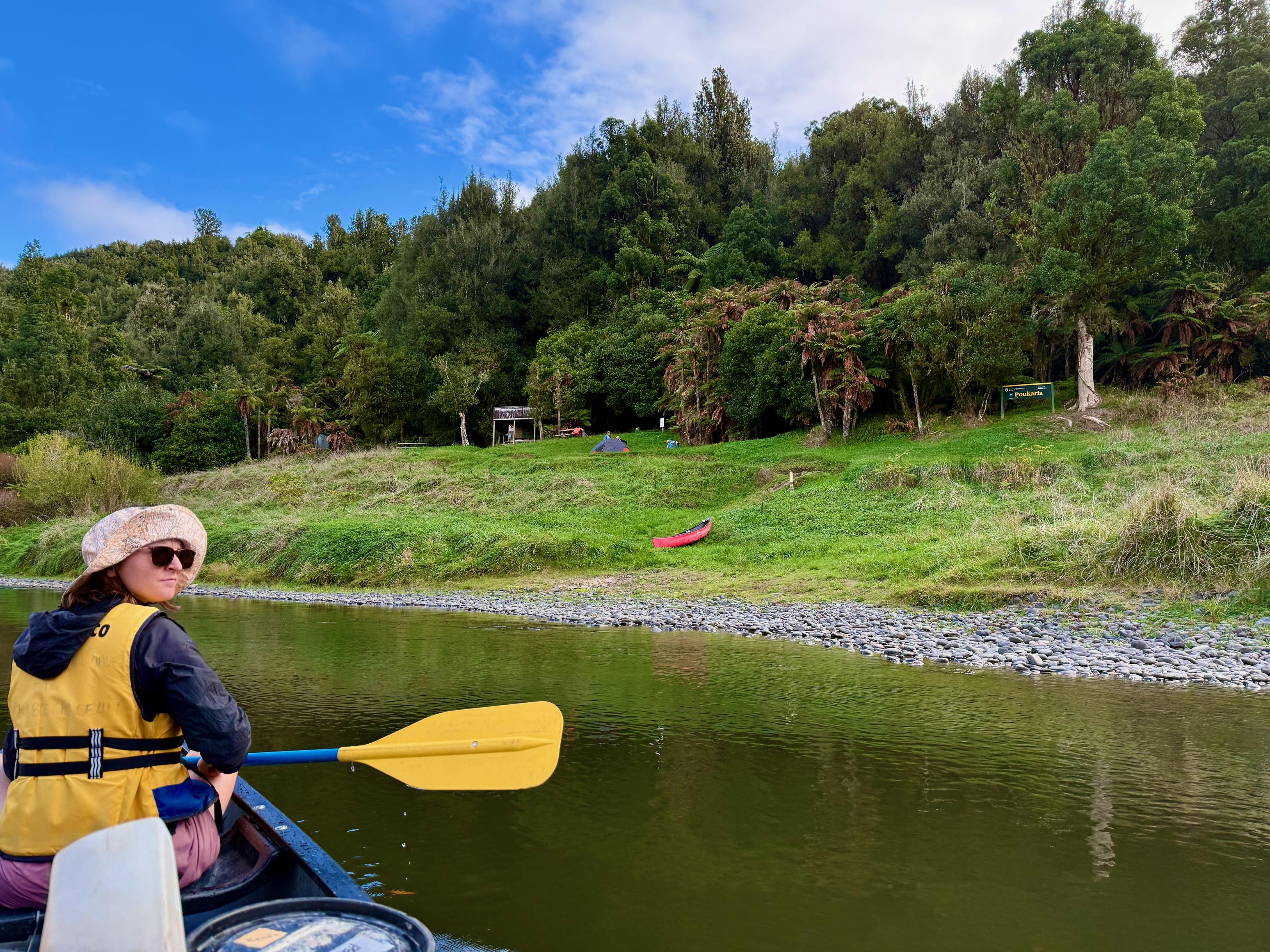 We arrived at Poukaria to see a couple of other kayakers already set up. They had set off at the same time as us, so we said hello and got camp set up. Some drizzle came in during the evening which was a bummer, but we managed to stay fairly warm and dry in our sleeping bags. Warm, for me, included wearing my beanie, socks and a few extra layers. It was not warm outside!